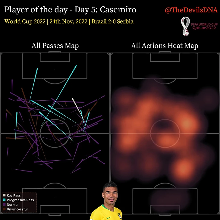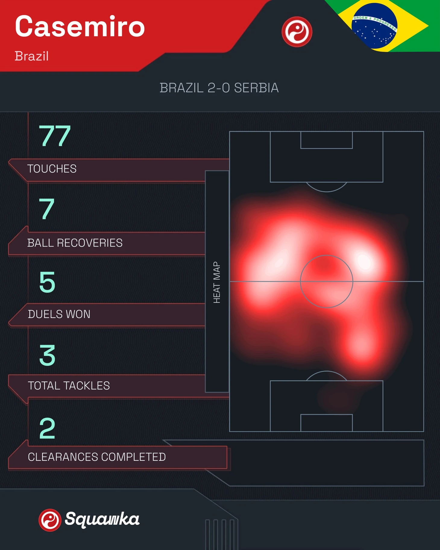 Слаженность игроков обороны и полузащитников (особенно Каземиро) сыграли ключевую роль в прессинге и восстановлении владения. Это полностью нейтрализовало сербские контратаки и позволило быстро возобновлять собственные атаки. Сербию просто заперли на своей половине поля.