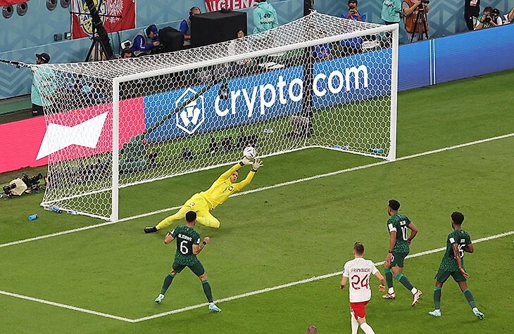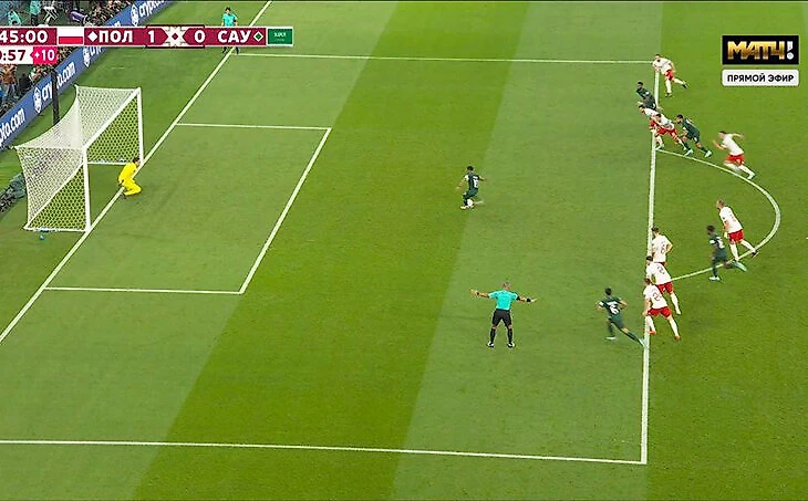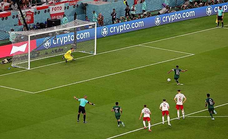 В конце первого тайма Салех Аль-Шехри заработал пенальти с помощью ВАР (там Крыстян Белик и правда ударил саудовца по ноге) – и началось самое интересное.