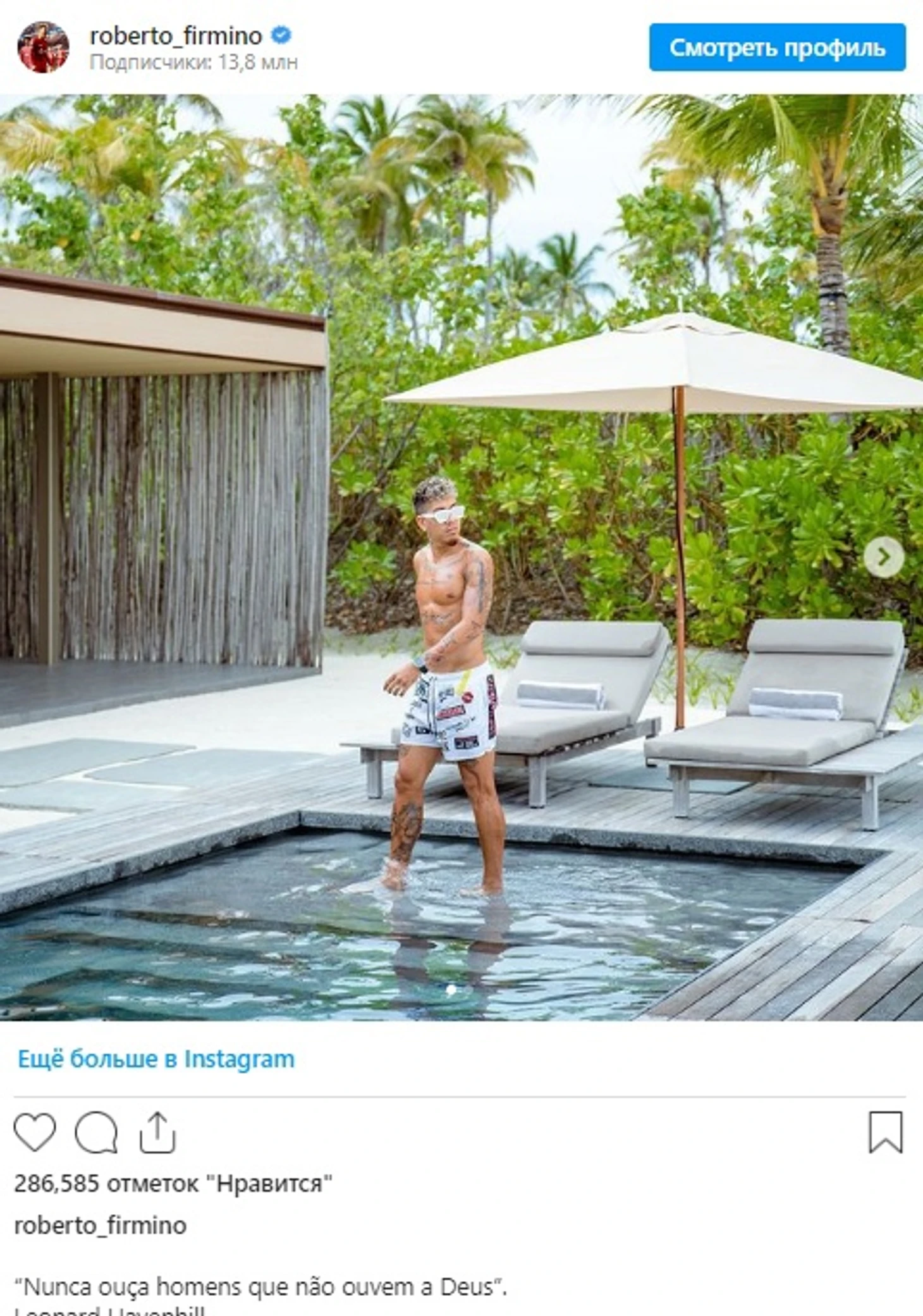 Роберто Фирмино и Джо Гомес, а также член тренерского штаба Витор Матос тоже поделились фотографиями с мальдивских островов, только они проводят там время со своими семьями.