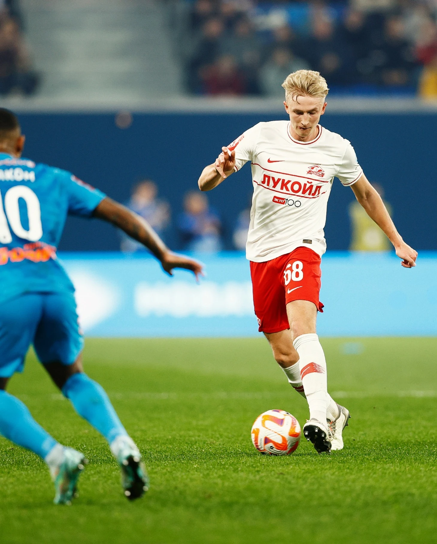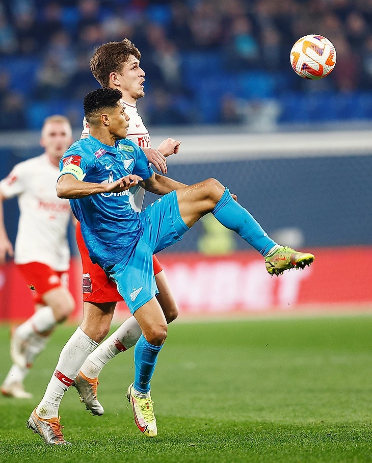 Несмотря на то, что спартаковцы давно уже решили главную задачу выхода в следующий этап турнира, матч в Питере представлял определенный интерес. Сопернику надо было не просто победить, чтобы подняться с третьего места, но и очень хотелось при этом выиграть с разницей в четыре мяча. Сложно, но хозяева поля были, судя по всему, настроены именно на это. Что оставалось делать спартаковцам? Постараться играть в свою игру, понимая, что соперник будет не только идти вперед, но и максимально внимательно играть в обороне, помня о быстрых контратаках красно-белых. «Спартак» тоже постарался перекрыть все зоны для развития атак хозяев поля, так что во многом игра в первом тайме была похожа на этакое «перетягивание каната». Перетягивали старательно, не без погрешностей в передачах, срывах задуманного, но упорно и старательно пытались все же выполнить, видимо, свои намеченные на игру планы. Какого-то обдуманного и интересного футбола было мало. Временами «Спартак» даже перехватывал инициативу, заставлял хозяев поля всей командой отходить на свою половину поля, но в целом все это ни к чему опасному у тех и других ворот не приводило.