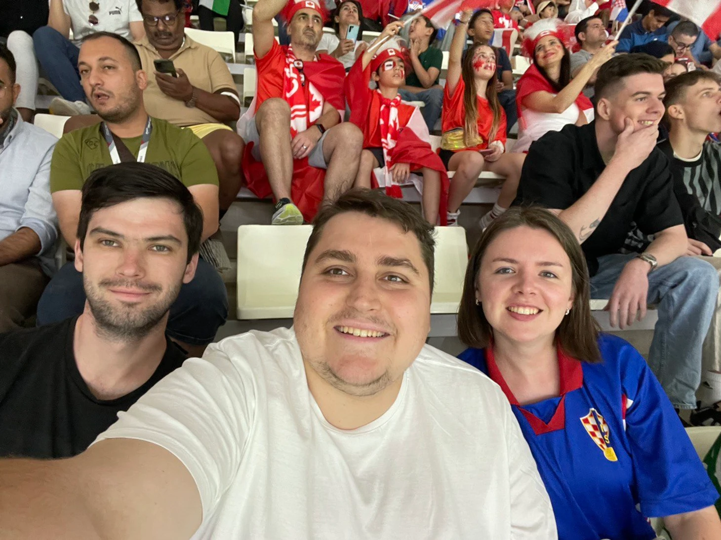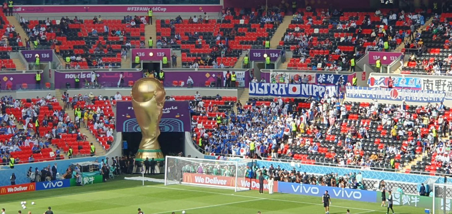 Мы подошли к одному из маленьких магазинов, очередь была длинная: тут к нам подлетел сотрудник ФИФА и объяснил, что сейчас этот магазин закроется, но вы можете купить все, что хотите, в любом другом магазине на своем этаже. Мы уточнили, есть ли на нашем секторе фан-шоп, сотрудник ответил согласием. Мы прошли контроль на наш гейт и начали подниматься девять этажей вверх (да-да, мы на игре Хорватия – Канада сидели на самом верху стадиона «Халифа»).
