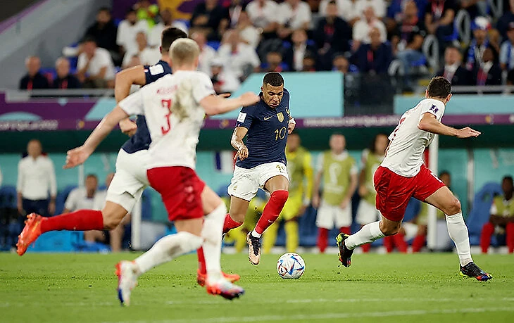 Перед стартовым свистком комментатор разогревает зрителей и говорит про месть за унижение французов в Лиге наций. Разумеется, я не смотрел Лигу наций, поэтому бужу Алису. Она молниеносно реагирует: оказывается, летом Дания обыграла Францию 2:0. Не очень похоже на унижение, но окей.