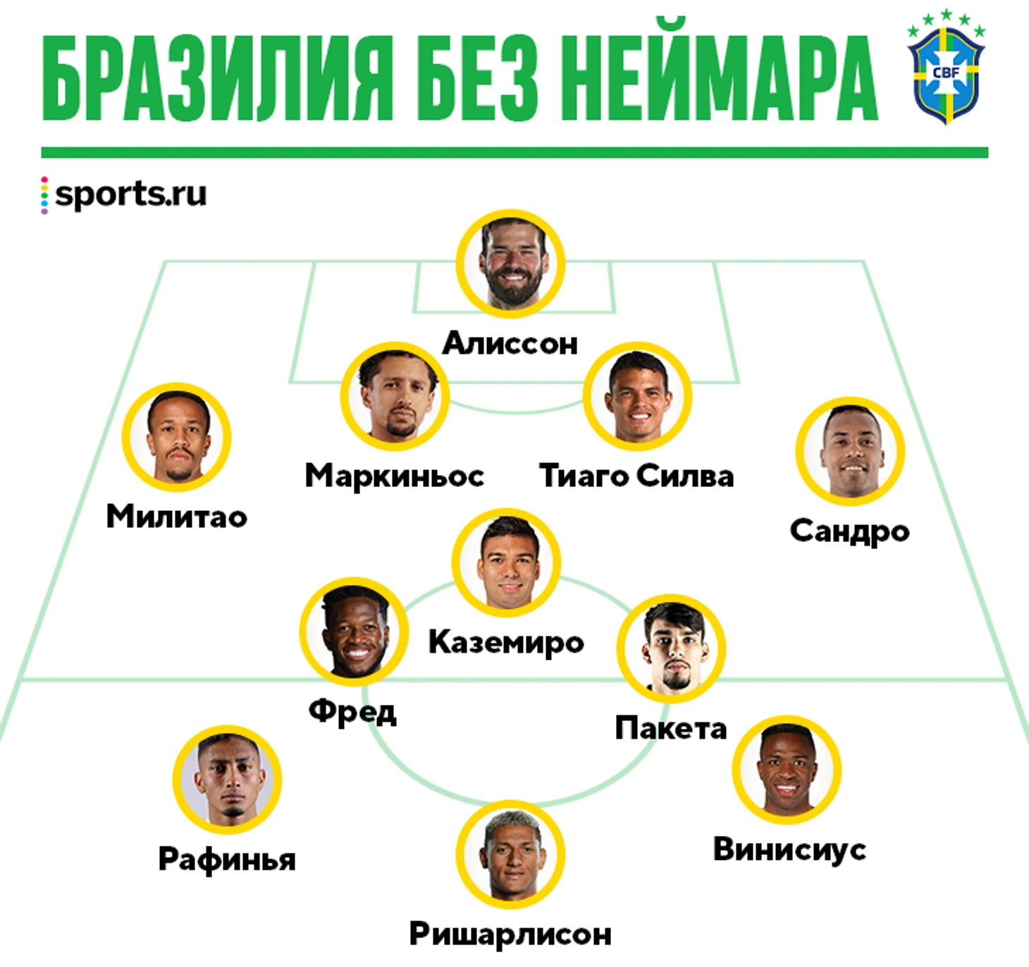 Кажется, максимально точно ситуацию описал Кака (пускай использовал для этого избитую аналогию): «Думаю, эта Бразилия максимально сильна как команда. Неймар – вишенка на торте, но сила команды не в индивидуальных талантах игроков. Именно это нужно на ЧМ – нужна командная мощь. Именно поэтому считаю, что Бразилия может выступить очень хорошо – с Неймаром или без».