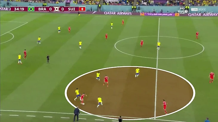 Если бы Бразилия задействовала хотя бы одного крайнего защитника в атаке, то получала бы дополнительного игрока в центре (например, Сандро закрывает фланг, Винисиус смещается), но в текущей структуре ключевая задача фланговых защитников – быть готовыми к контратаке.