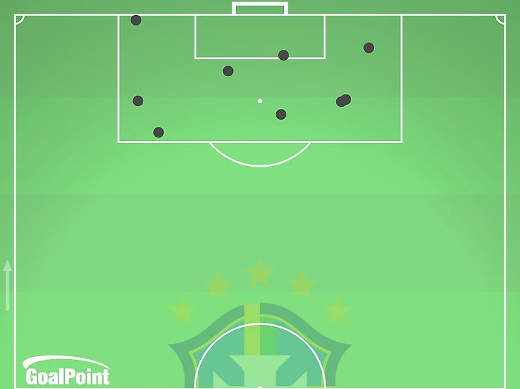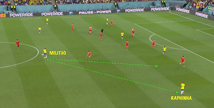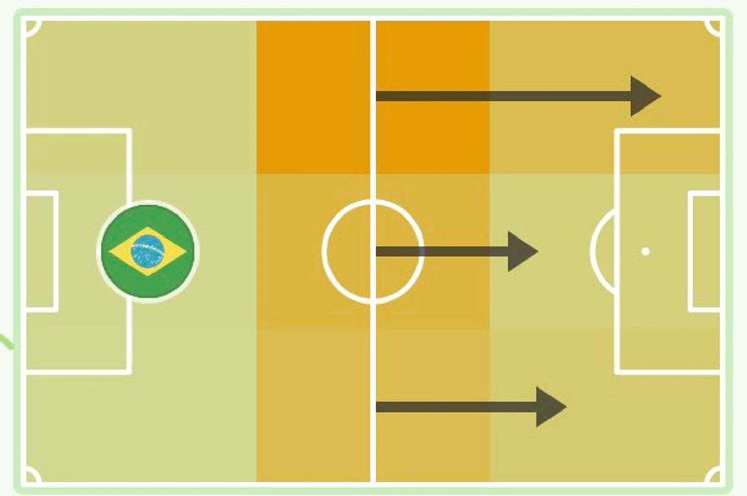 Что касается отсутствия Неймар, у Бразилии есть целых три игрока(Рафинья, Винисиус и Неймар), которые могут создать численный перевес в любой момент игры. Когда есть Неймар, это выглядит приблизительно так, два соперника вынуждены концентрироваться на нем, что тут же оставляет фланги атаки в изоляциях. Без Неймара фланги чаще играют 1(Винисиус или Рафиньян) в 2(швейцарца). Ну за исключением тех случаев, когда Фред вообще не знает как пасовать на Рафинью.