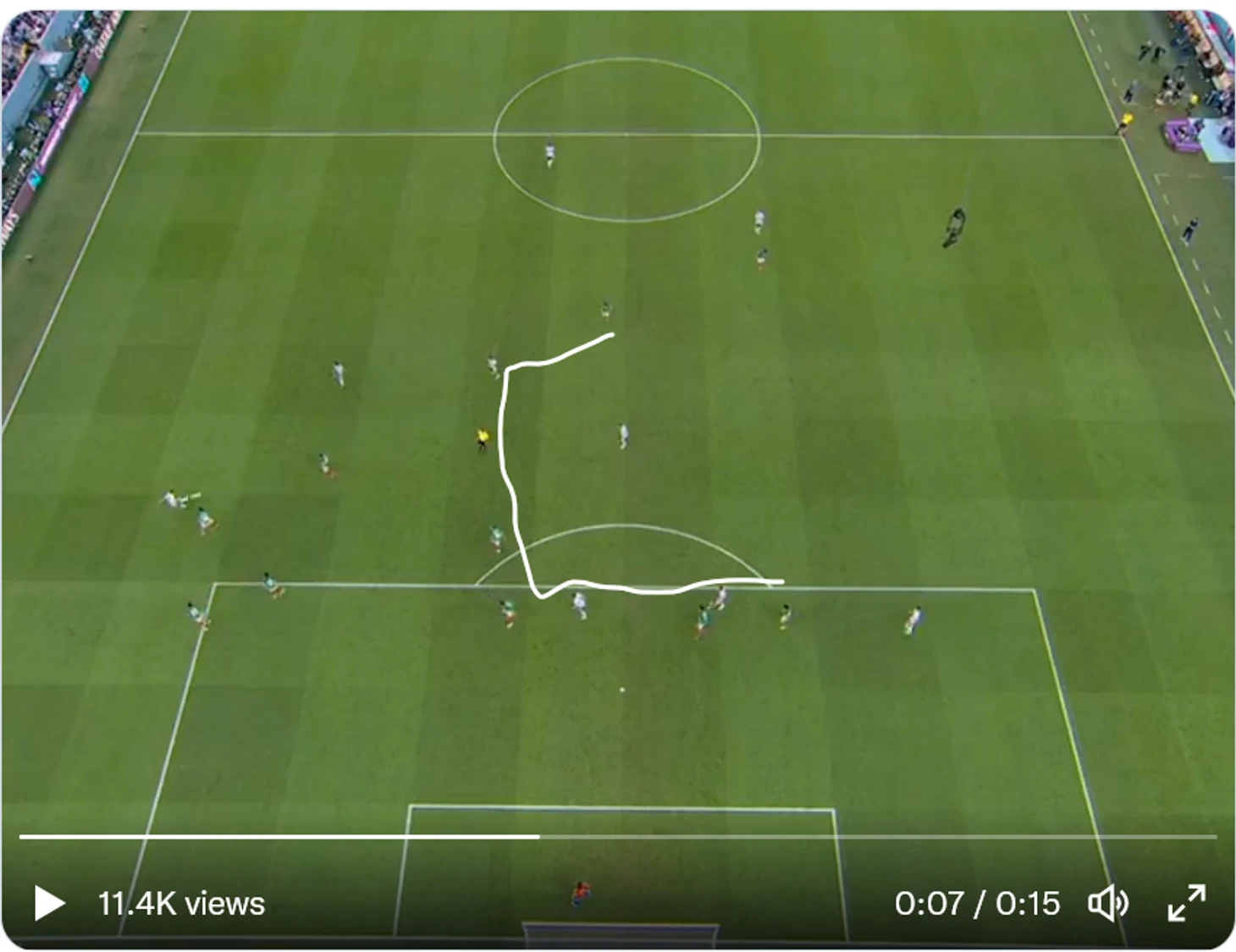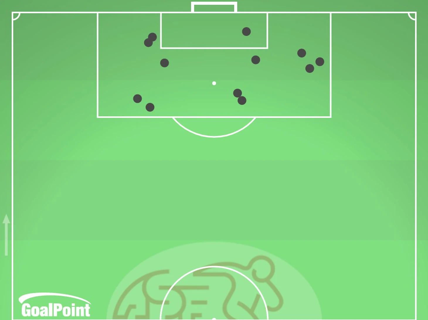 Обратите внимание как вышедшие на замену улучшили прогрессию мяча и передвинули эту зону мяча ближе к воротам Зоммера