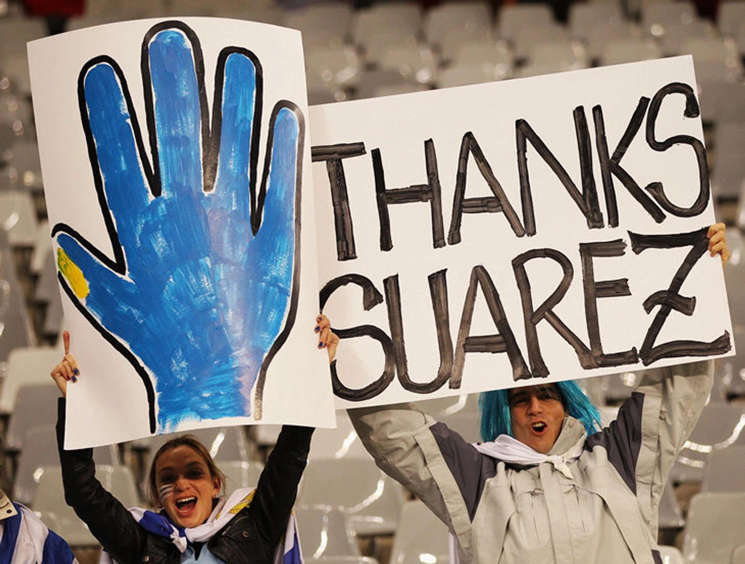 На следующий день южноафриканская газета The Mercury вышла с фотожабой на первой полосе: к портрету Суареса пририсовали красные рожки и подпись «Рука дьявола». В остальном реакция была доброжелательной – в Уругвае Суареса встречали как героя.