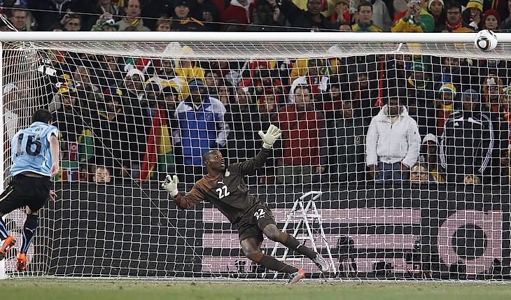 Уже в середине первого тайма Гана получила пенальти – и отличный шанс закрыть гештальт 12-летней давности. Но снова не забила 11-метровый уругвайцам! Тоже удар левой ногой, но теперь сэйв вратаря Серхио Рочета.