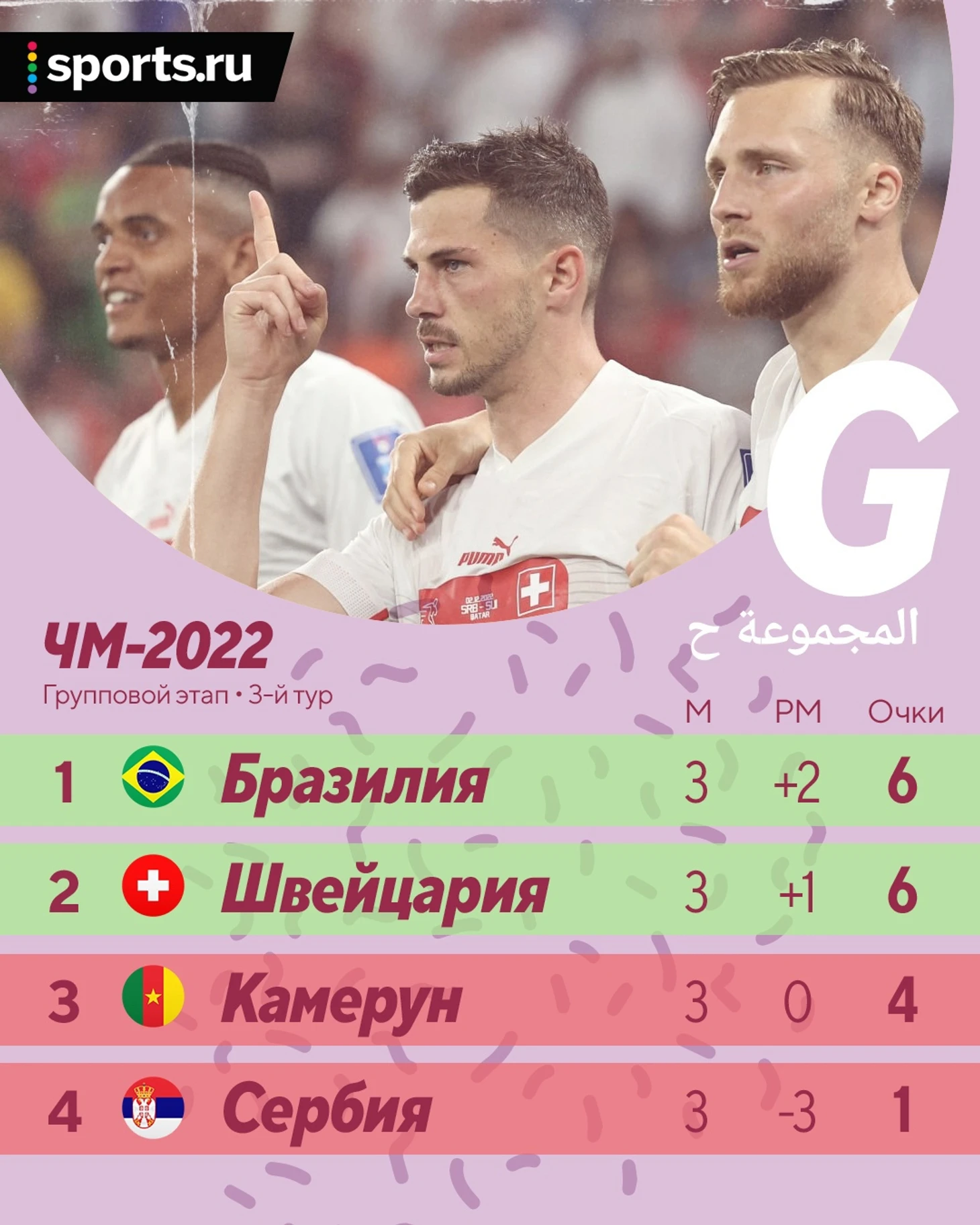 Бразилия чуть не слетела с 1-го места, Камеруну не помогла даже победа, а Сербия – провал. Итоги последней группы ЧМ