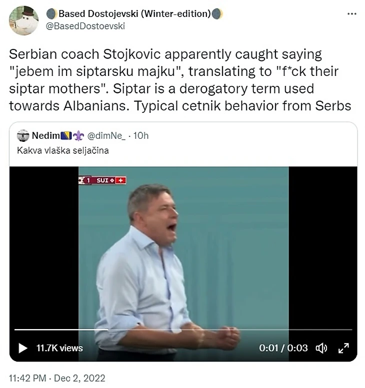 📹Все обсуждают жест Джаки в сторону скамейки 🇷🇸.Правда, до этого тренер Сербии призывал «##### албанских матерей», а Влахович сам держался за яйца при праздновании