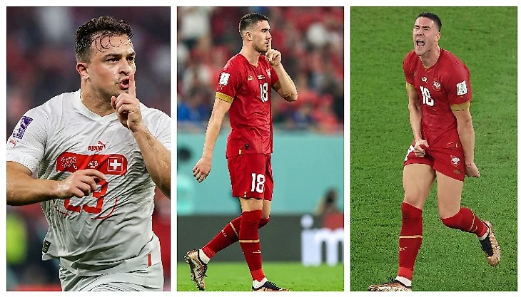 Вчера, забив гол, Шакири ограничился тем, что приложил палец к губам, Душан Влахович, отправив на 35-й минуте мяч в ворота Швейцарии, повторил жест Джердана и тоже приложил палец к губам, дополнительно схватившись за член (правда, тут не факт, что жест был посвящен именно скамейке Швейцарии).