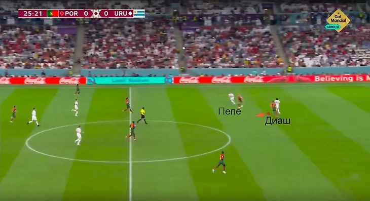 Когда Пепе реагировал на летящий мяч, Диаш играл смелее и ловил уругвайца, открывавшегося под потенциальную скидку, в офсайд.