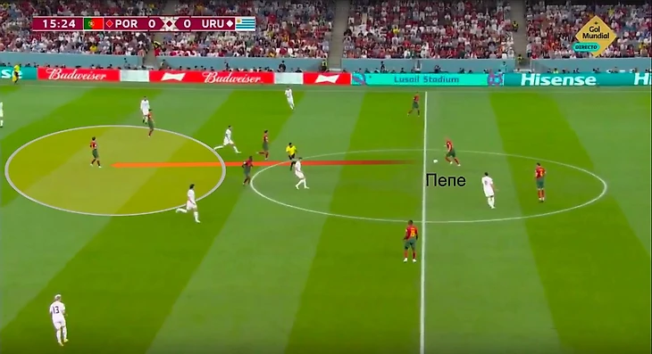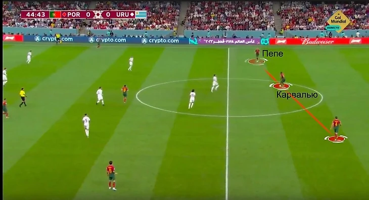 По-настоящему аккуратная игра Пепе актуальна только при длинных передачах Уругвая. При контрпрессинге, когда Португалия теряла мяч и сразу пыталась накрывать Уругвай, защитник порой дергался высоко, эффективно играл в проактивной манере.
