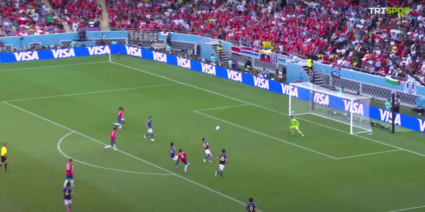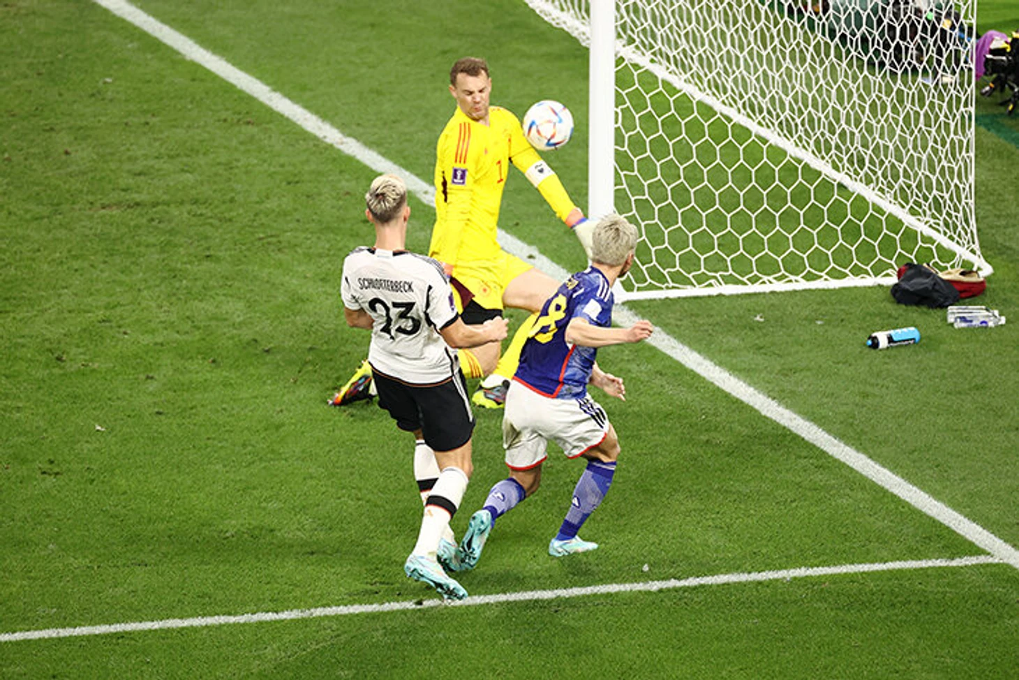 Смотрите: японец с ним сблизился, Нойер подсел и ждал удар либо низом, либо невысоко от газона. В этой ситуации невозможно предугадать, что игрок ударит верхом. Потому что сделать это оттуда непросто, надо прямо подсечь мяч. У японца каким-то чудом все получилось.
