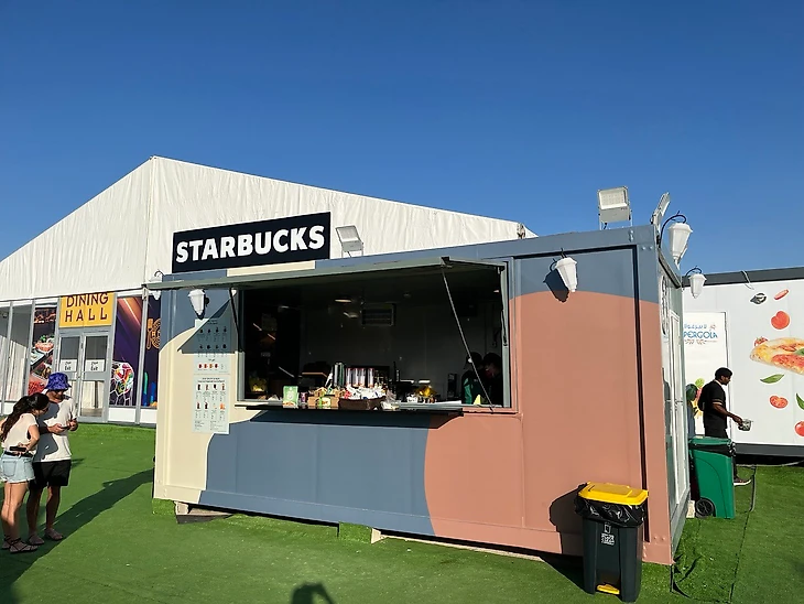 Рядом с фанзоной несколько точек питания. Можно попить кофе в кабинке «Старбакс».