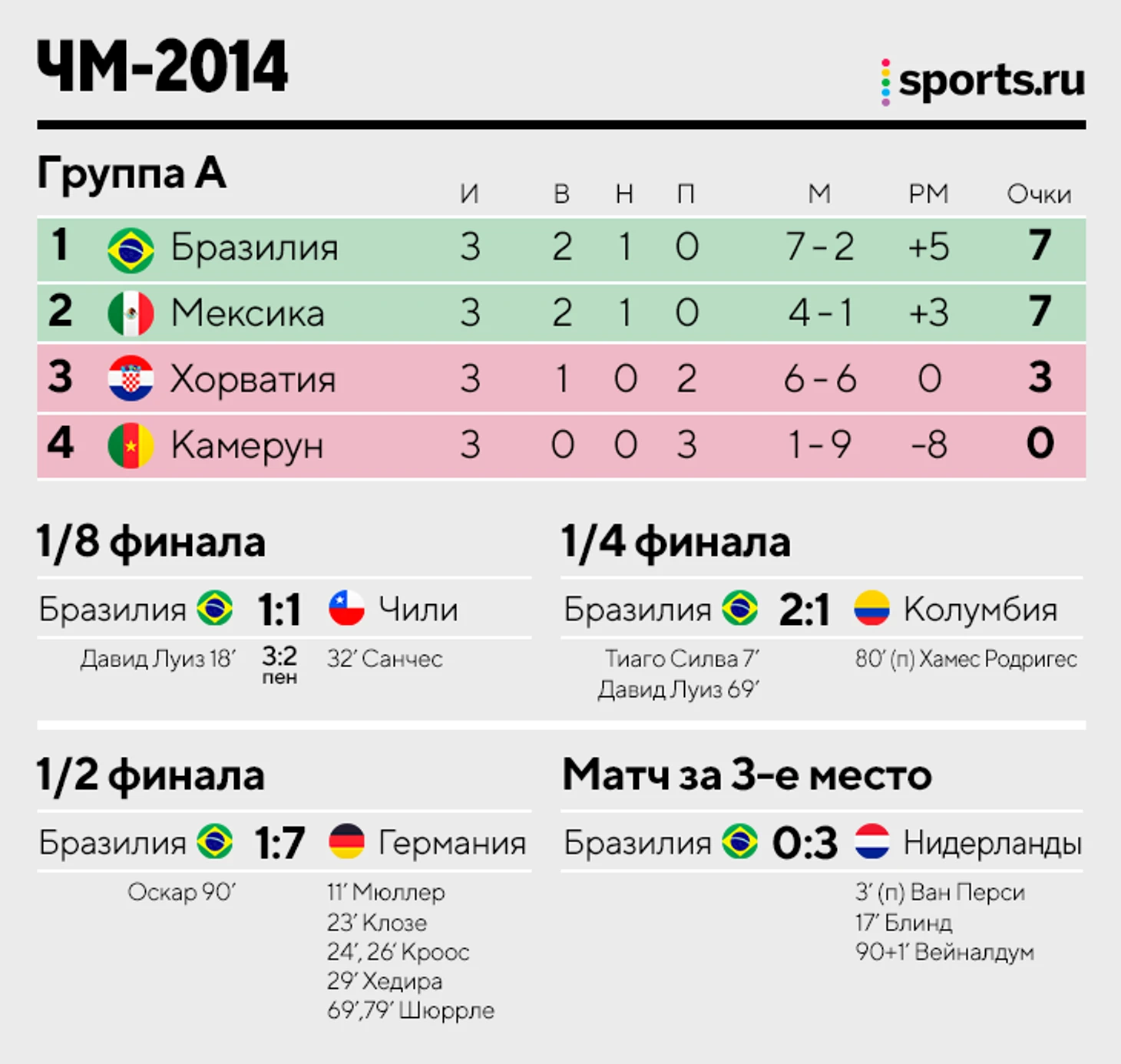 Так думала примерно вся Бразилия, а команда только убеждала болельщиков. Возможно, местами бразильцы выглядели лениво, но результаты дико радовали. Минус Хорватия (1:0), Австралия (2:0) и Япония (4:1) в группе, минус Гана (3:0) в 1/8 финала.