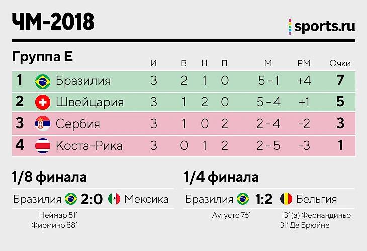 В России все было по классике: никаких сложностей в группе, легкая победа над Мексикой (2:0) в 1/8 финала, а дальше – золотое поколение Бельгии. Как мы уже поняли, именно тогда был его последний шанс. И в целом последним шансов бельгийцы воспользовались – вышвырнули с турнира Бразилию и заняли третье место.