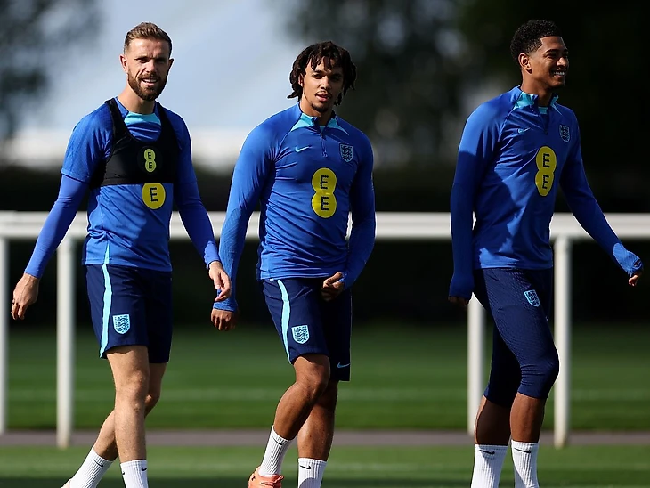 В сборной Беллингем активно общается с игроками мерсисайдцев Хендерсоном и Трентом Александером-Арнольдом.
