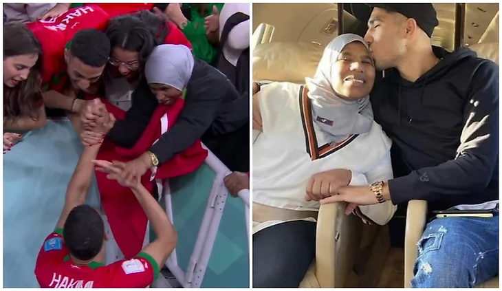 Защитник «ПСЖ» и сборной Марокко Ашраф Хакими делает из празднования с мамой Саидой Му хорошую и добрую традицию. Это уже второй случай, когда он отправился разделить радость с самым близким ему человеком. Хакими рос в небогатой семье, в которой и отец, и мать выполняли низкоквалифицированную работу, чтобы зарабатывать на жизнь. Женщина не хотела, чтобы Ашраф занимался футболом, но он смог переубедить ее. Как видим, не зря.