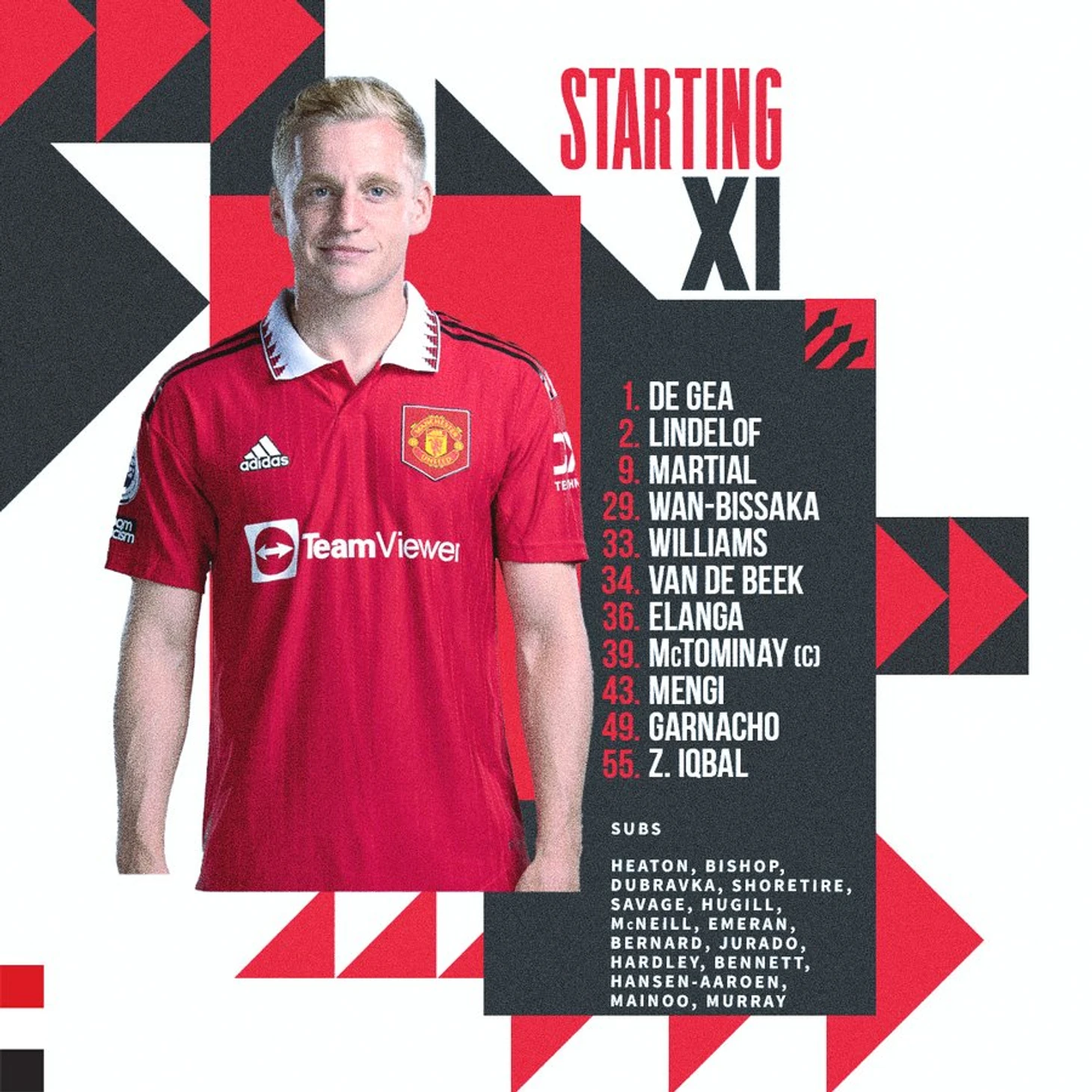 За два часа до начала товарищеского матча против «Бетиса» Эрик тен Хаг определился со стартовым составом на игру. В нем нашлось место для хавбека Донни ван де Бека. Однако затем он резко перед самым стартом игры был заменен на воспитанника академии Исака Хансена-Ороэна.