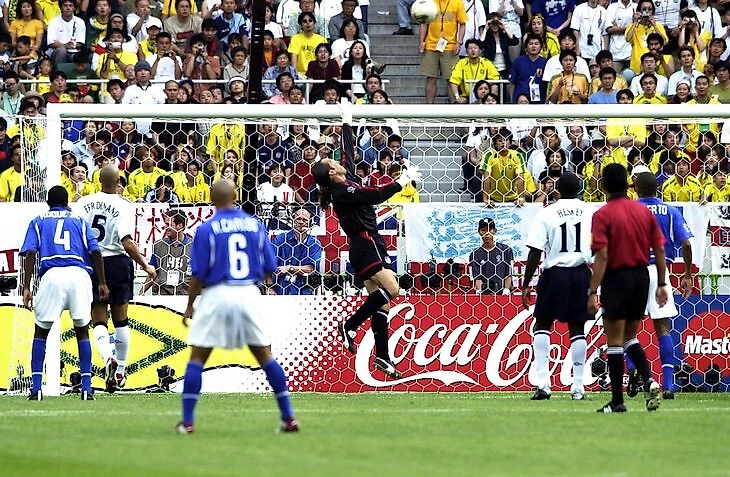 • ЧМ-2002 – Англия с суперзвездным Дэвидом Бекхэмом разгромила датчан в 1/8 финала и вышла на Бразилию. Этот матч мы запомним по гениальному (или случайному) штрафному Роналдиньо за шиворот Дэвиду Симэну. В сумме с голом Ривалдо он привел к английскому вылету.