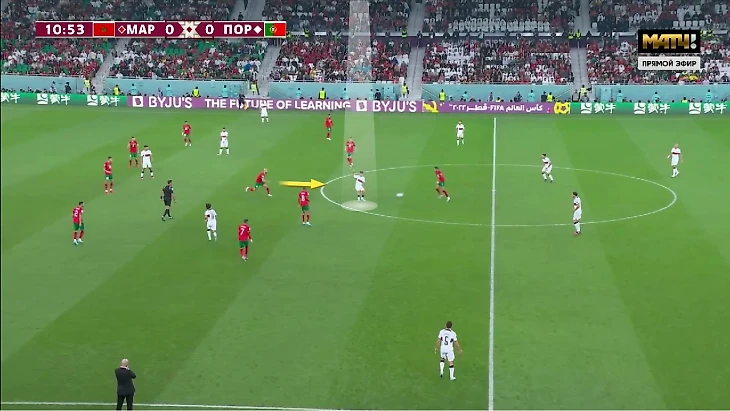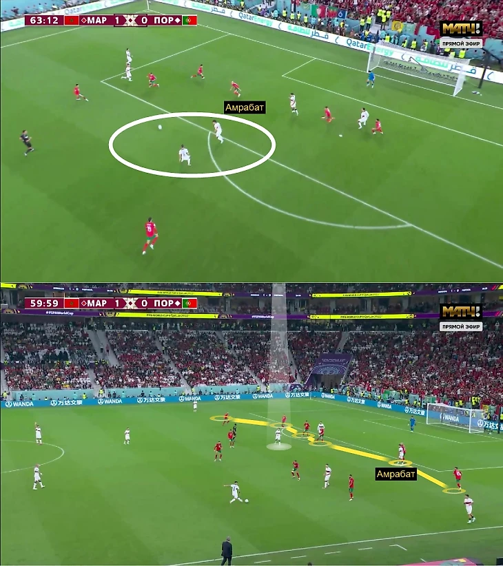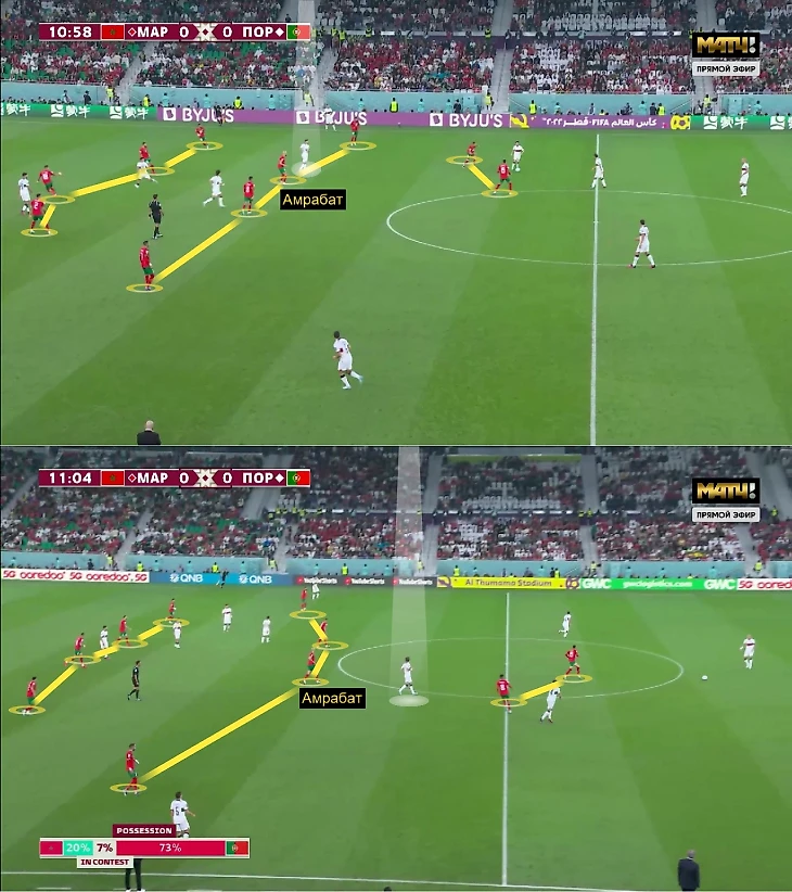 В первом тайме марокканцы сыграли на равных с Португалией, а Амрабат обеспечивал гибкость схемы (переход с 4-1-4-1 на 4-4-2)