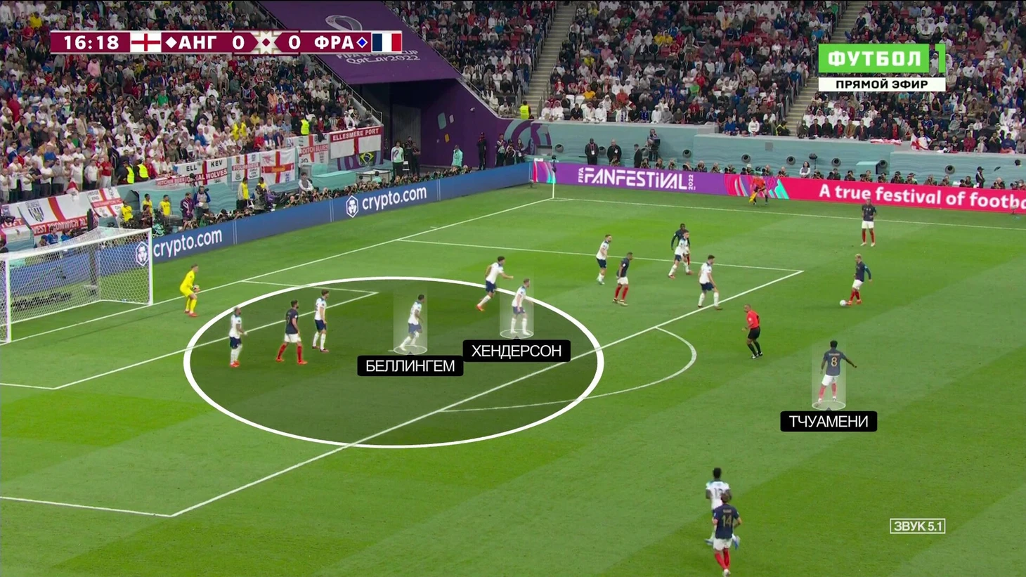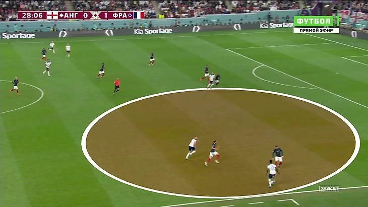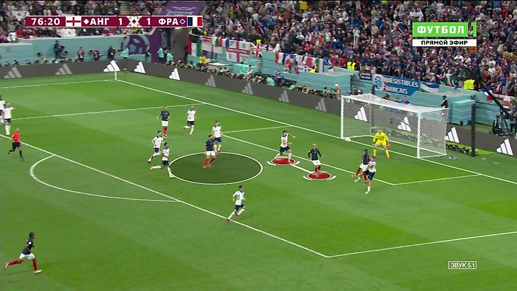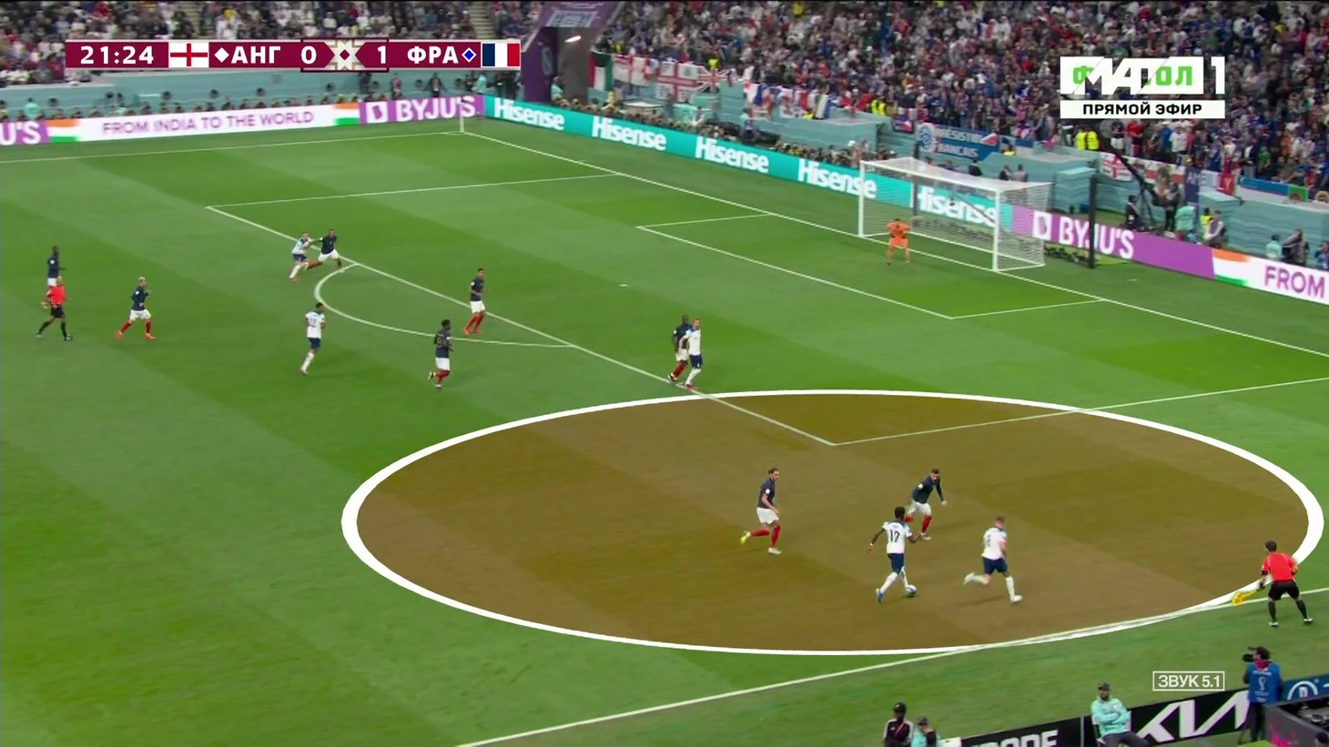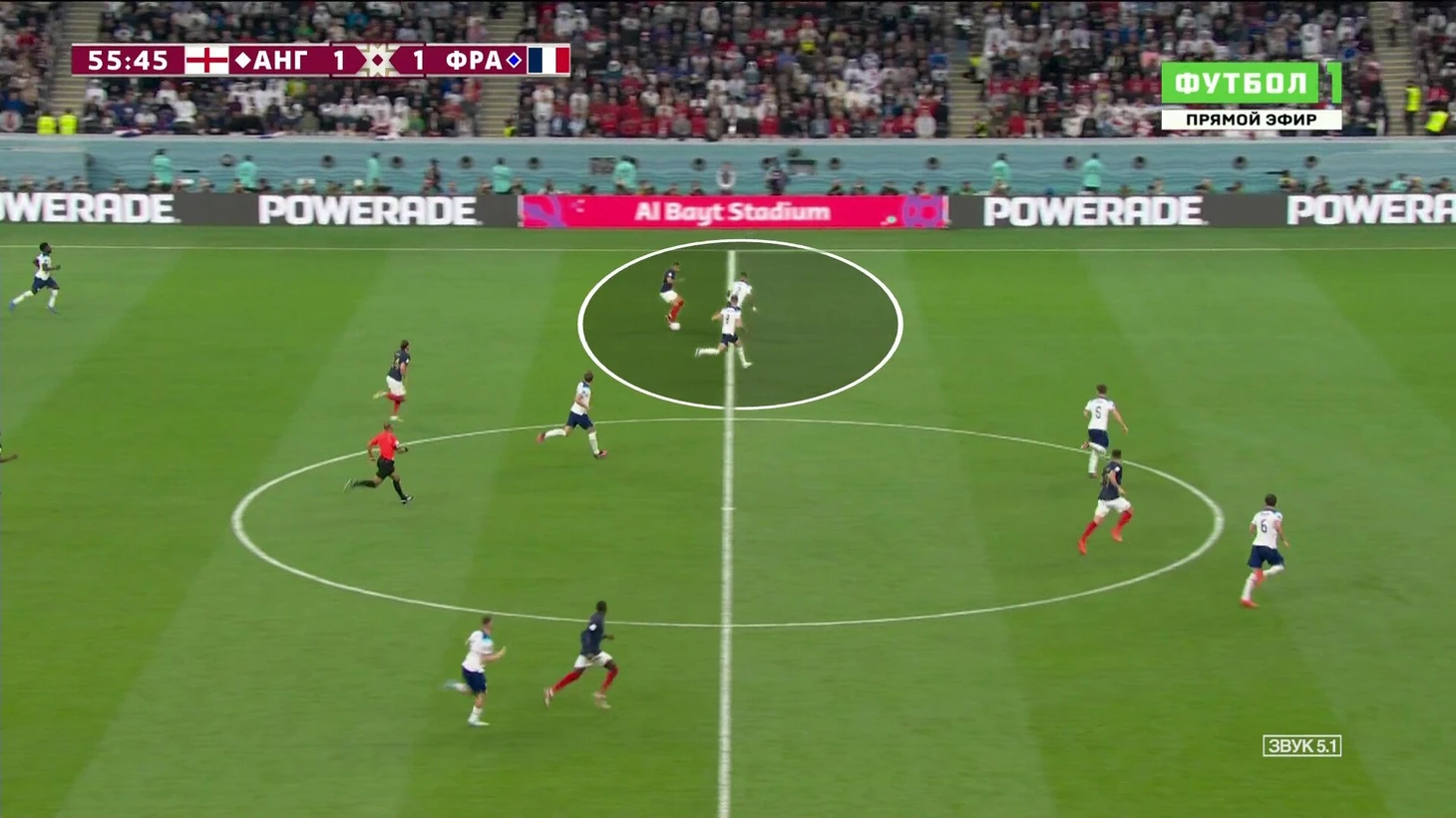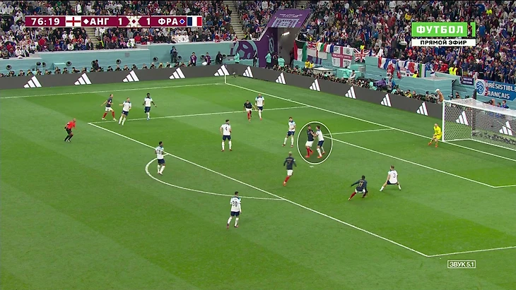 Еще одна ключевая дуэль – Уокер против Мбаппе. Она не про созданные моменты, а про предотвращенные. В описанном выше сценарии, где Франция садится, а Англия давит на уязвимую зону, не было бы ничего страшного, если бы Франция регулярно отвечала контратаками через Мбаппе. Их не было – именно поэтому игра становилась однобокой.