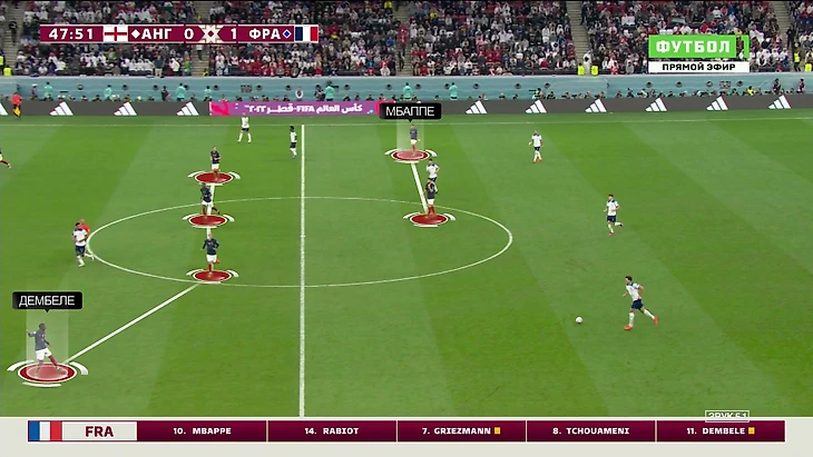 То есть при равном счете мы наблюдали равную игру, в которой Франция лучше реализовывала шансы и эффективнее атаковала (был постоянный способ создания моментов – обсудим ниже). Но при счете в свою пользу Франция радикально садилась в оборону (это нормально), но оборонялась очень плохо (к этому вопросы) и совсем не отвечала через контратаки с Килианом Мбаппе в составе и в освобожденной роли (это совсем катастрофа).
