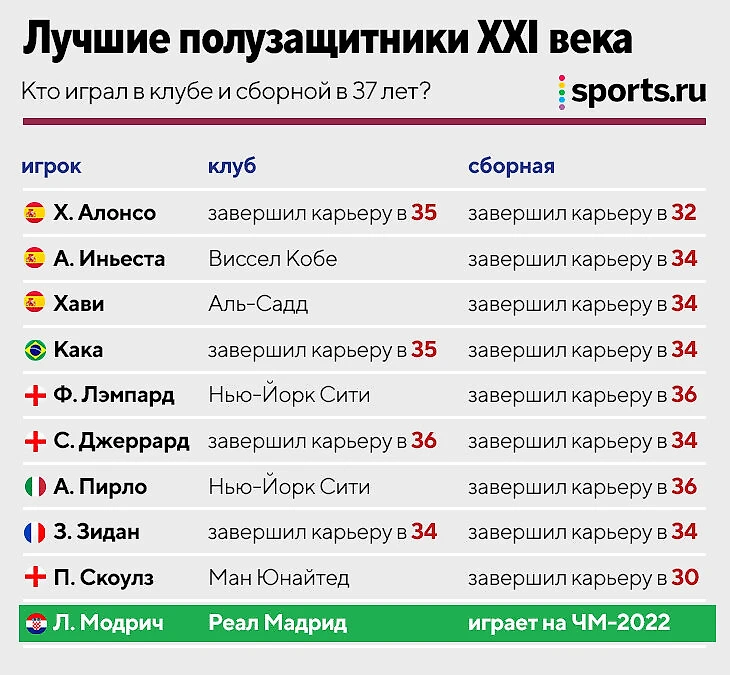 Список лучших полузащитников жестко субъективный и довольно условный – тут нет попытки найти самого-самого. Зато он выступает отличным фоном для фокуса на футбольном долголетии Модрича.