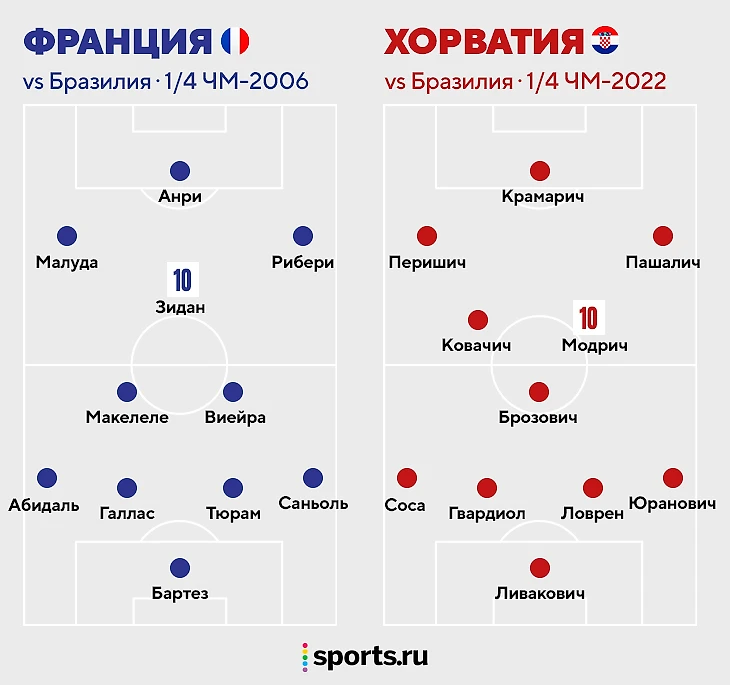 После матча с Бразилией многие сравнили игру Модрича с шоу от Зидана на ЧМ-2006. Стартовые вводные располагают к историческим параллелям: два капитана, два опытных полузащитника, два десятых номера против насыщенной звездами сборной Бразилии. Зидану было 34, Модричу, если вы вдруг забыли, 37.