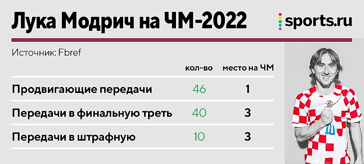 • По продвигающим передачам Модрич обошел даже монстров вроде Месси и Бруну Фернандеша.