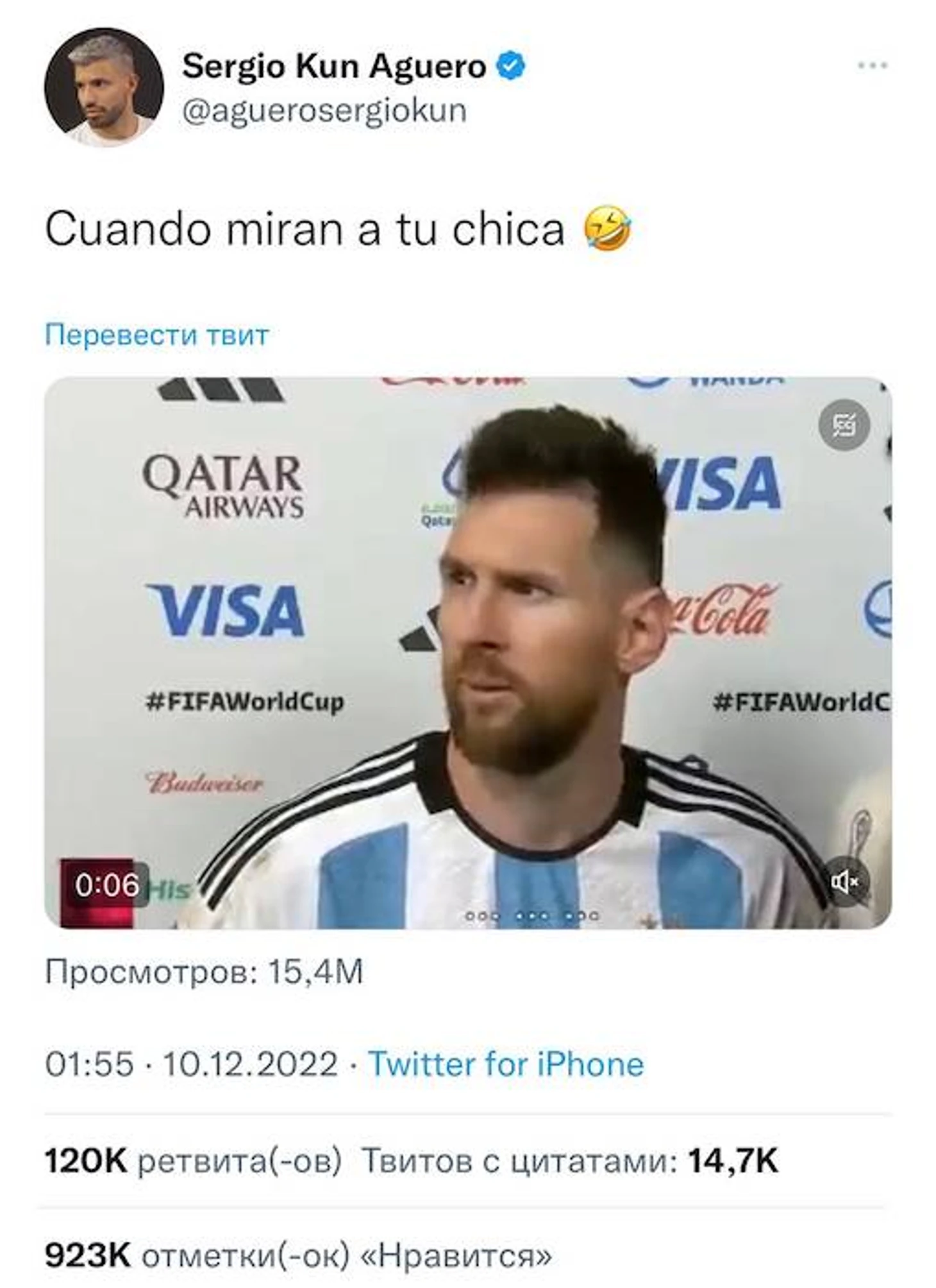 Фраза мгновенно завирусилась и в соцсетях – твиттер наводнили мемами по актуальной теме. Чемпионом стал Серхио Агуэро – экс-форвард сборной Аргентины выложил видео с фразой и подписал: «Когда они смотрят на твою девушку». На данный момент твит собрал почти миллион лайков.
