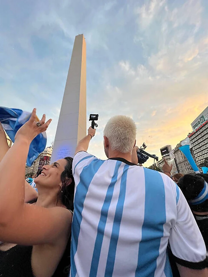 Мы все-таки выбрались из этого района и пошли заряжать камеры. А потом двинули в место, где аргентинцы всегда празднуют победы после матчей. Это площадь с Обелиском, который построили к 400-летию основания Буэнос-Айреса. Представьте, сколько всего помнит эта площадь. Там одна из самых широких улиц в мире – и она полностью заполняется людьми. Сотни тысяч человек.