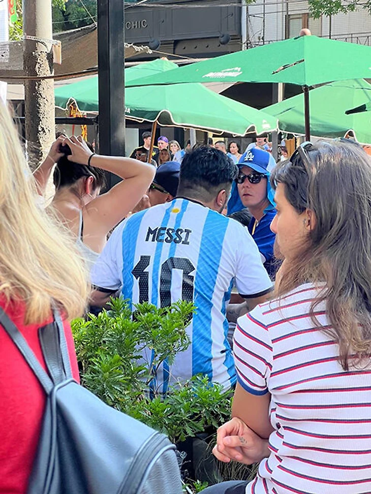 Матч приближался, и мы все отчетливее понимали, что вокруг нас нет людей в обычной одежде. Все в футболках сборной Аргентины. И у всех на спине – Месси. За весь тот день я встретил только две футболки с другими фамилиями – Хулиана Альвареса и Карлоса Тевеса. Все. Сплошные Месси. Это даже немного грустно: как будто нет Де Поля, Ди Марии, Отаменди, Мак Аллистера и других.