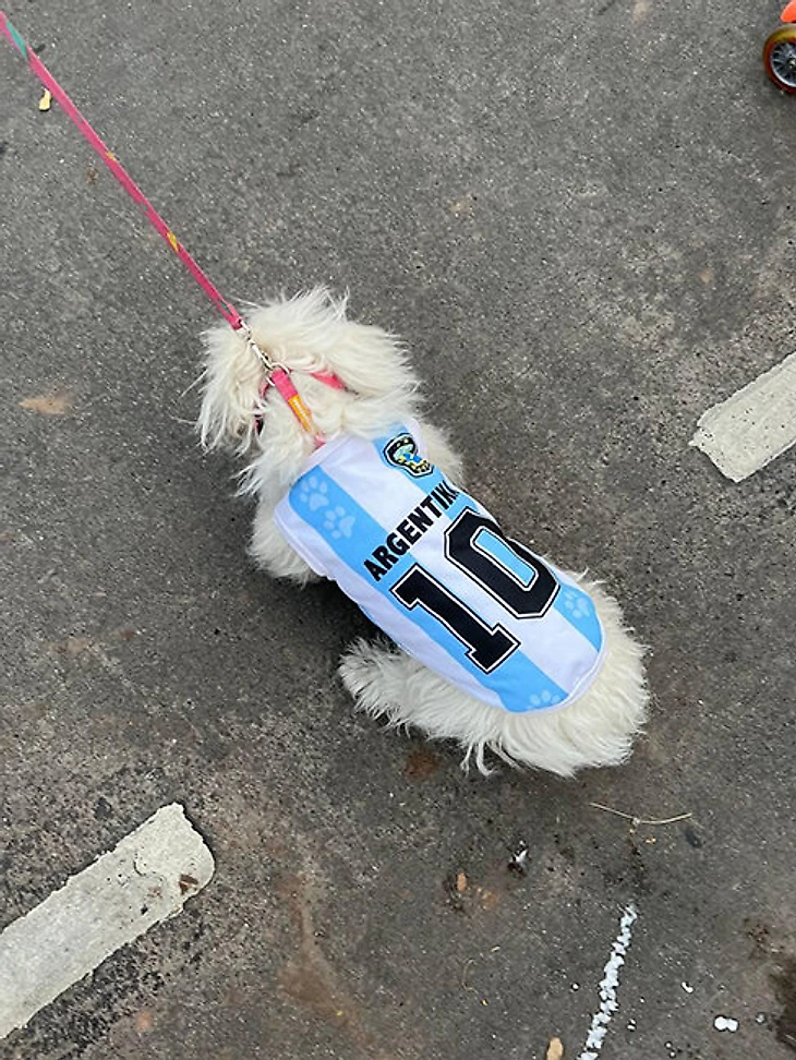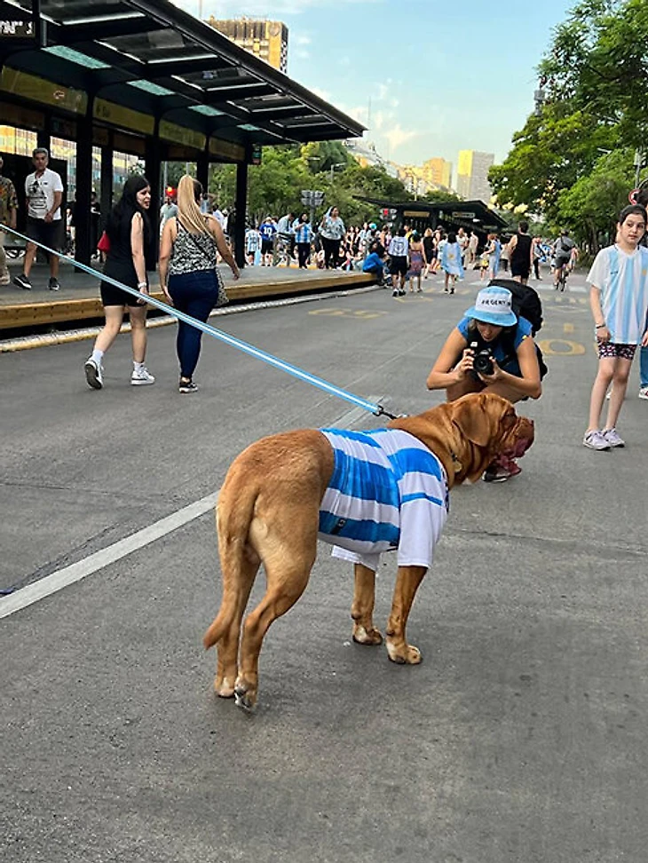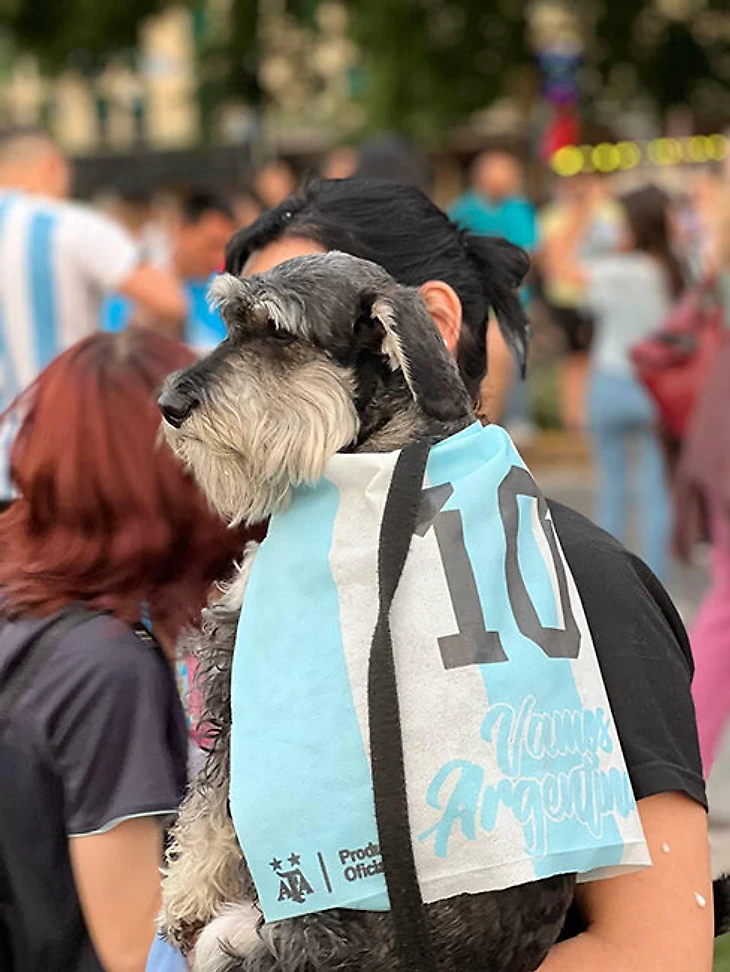 Да, люди выгуливают собак, а на них футболки с десяткой на спине. Обычный день в Буэнос-Айресе.