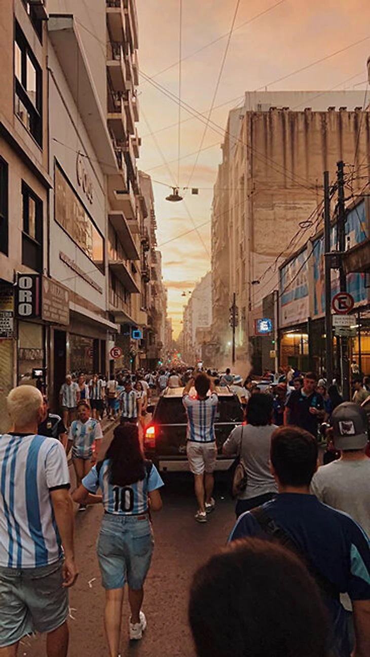 Блогер Витя Кравченко заскучал в Катаре и улетел смотреть полуфинал Аргентина – Хорватия в Буэнос-Айрес. Он выкладывал очень атмосферные фотографии и видео – нам сразу захотелось узнать, чем жил город перед матчем, что творилось во время трансляции и как люди отмечали выход в финал.