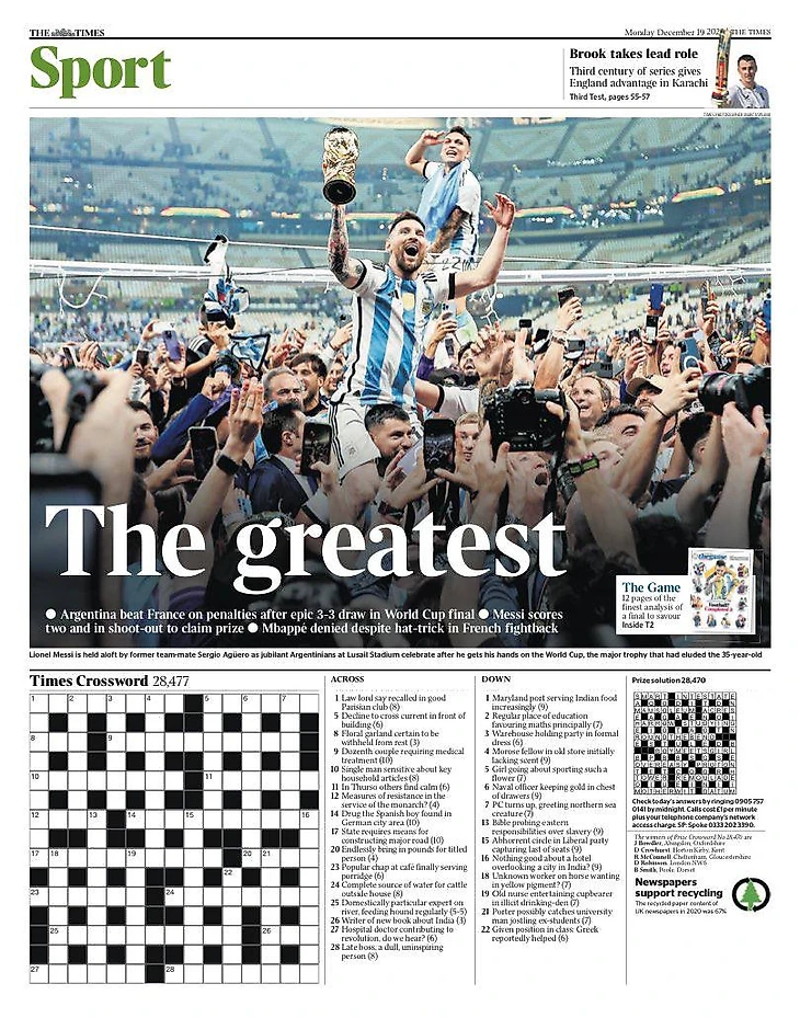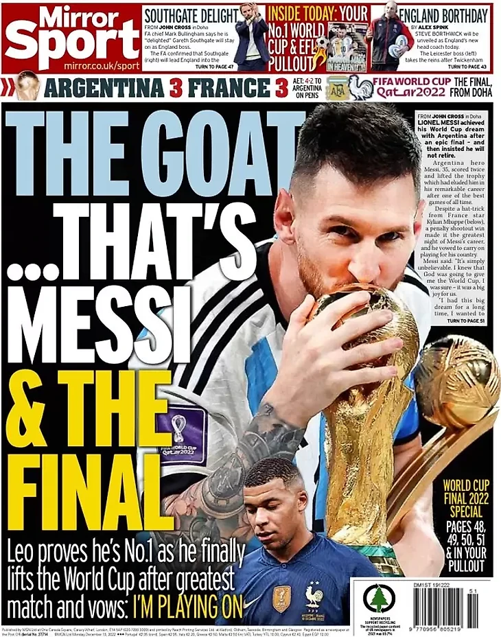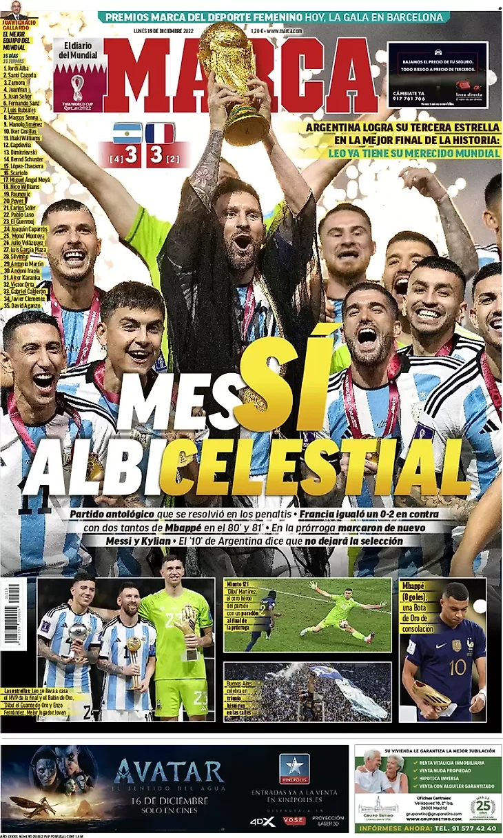 «Месси бессмертен – как Марадона». Первые полосы газет после эпичного финала ЧМ