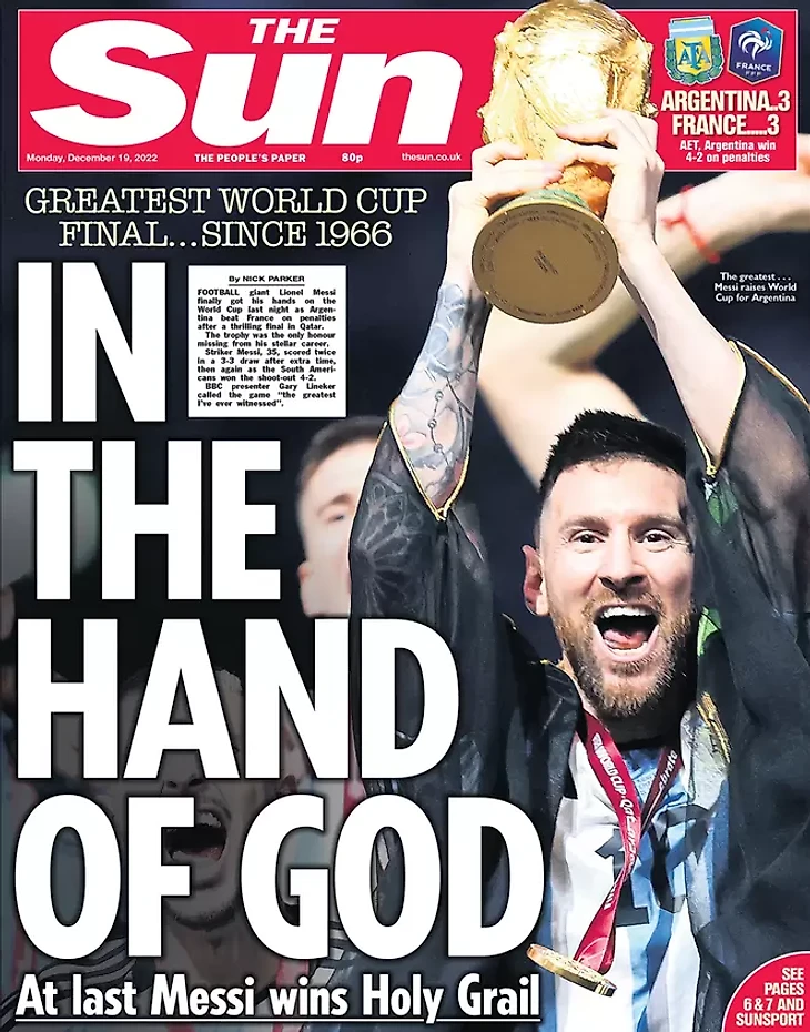«В руках бога: напоследок Месси выиграл Святой Грааль», – довольно эффектный заголовок от The Sun.