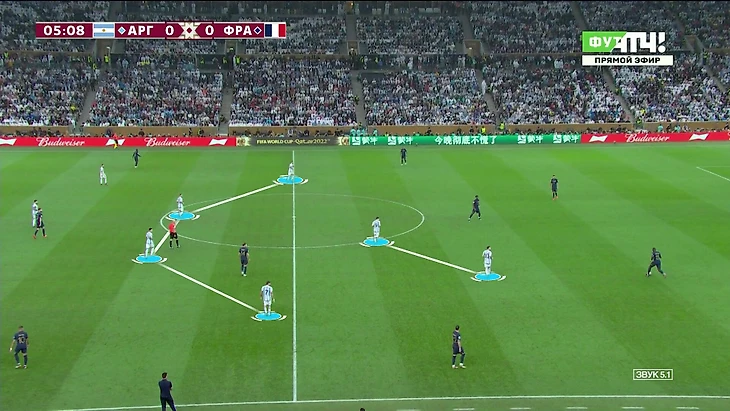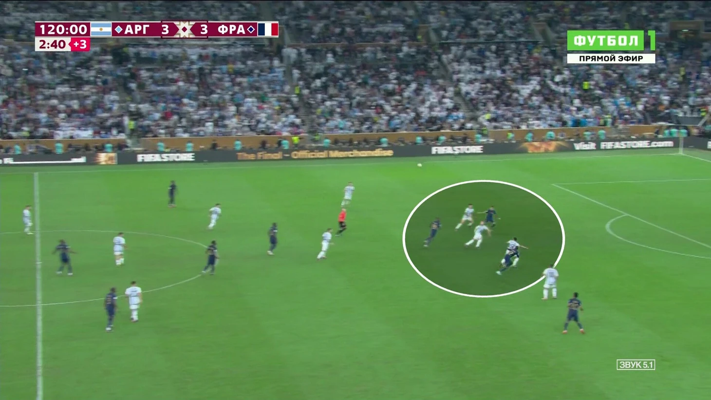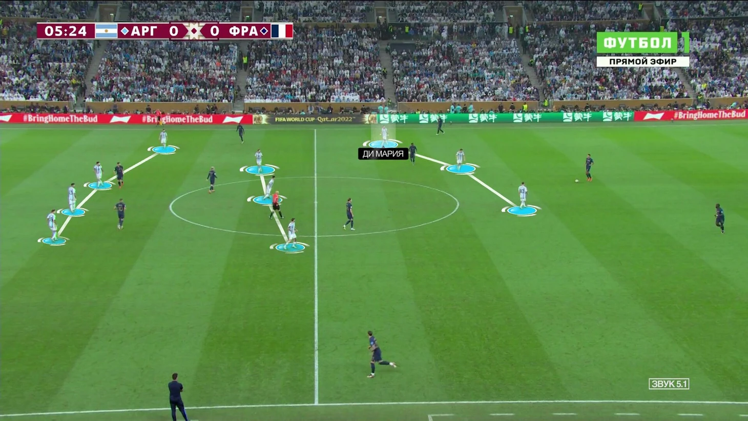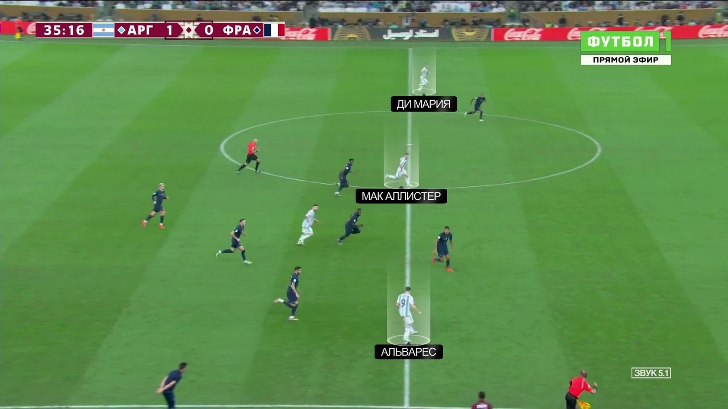 Скалони дал Аргентине план без мяча максимально неудобный для Франции + план с мячом, заточенный на качества Ди Марии как вингера и Месси как гения игры между линиями. Справа – задействование опорной с Месси в любимой зоне. Слева – создание комфортных условий под Ди Марию в широкой позиции.