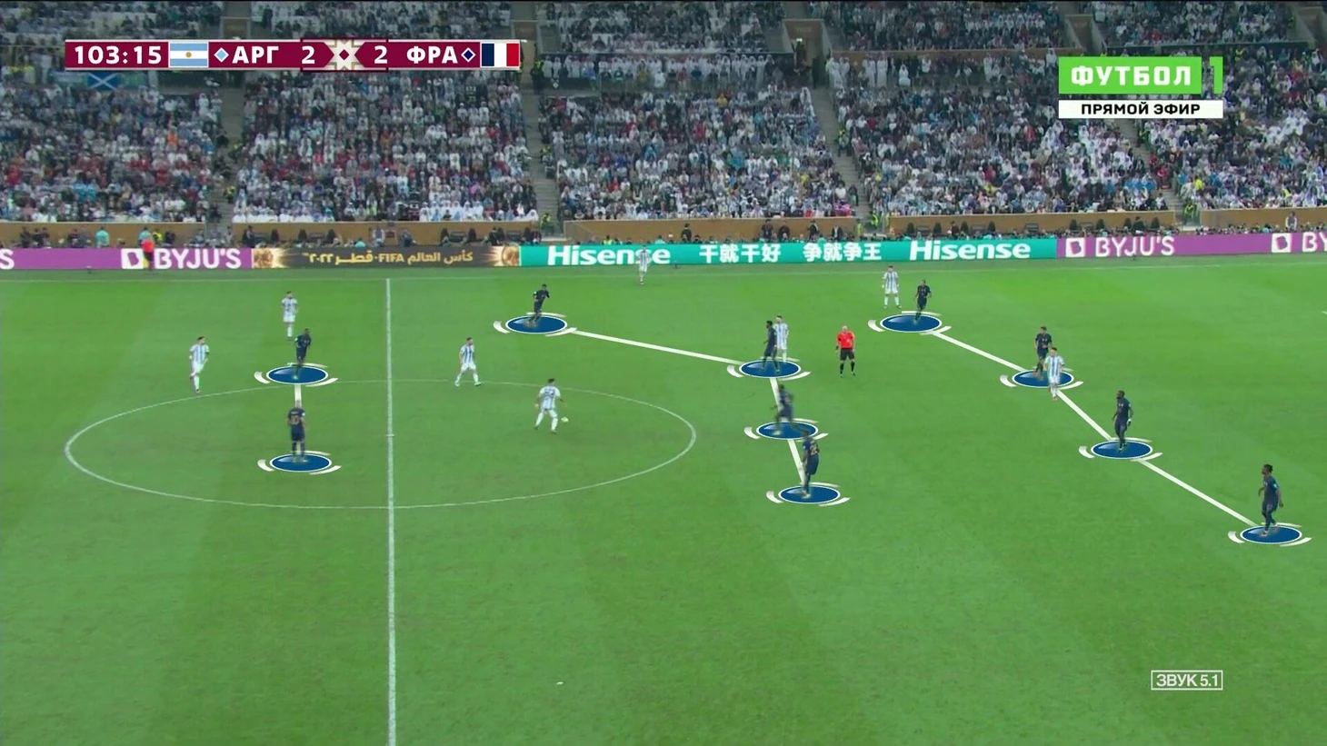 Пожалуй, замысел Скалони правильнее называть переходящей схемой с ориентацией Ди Марии на Кунде. Аргентине было важно закрыть продвижение через него (этим занимался Ди Мария) и через Тчуамени (тут работал Альварес). Схема Аргентины адаптировалась под эти задания.