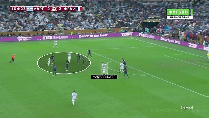 Потом отдал в окружении 4 соперников – так, чтобы Мак Аллистер получил максимум свободы в момент обработки: