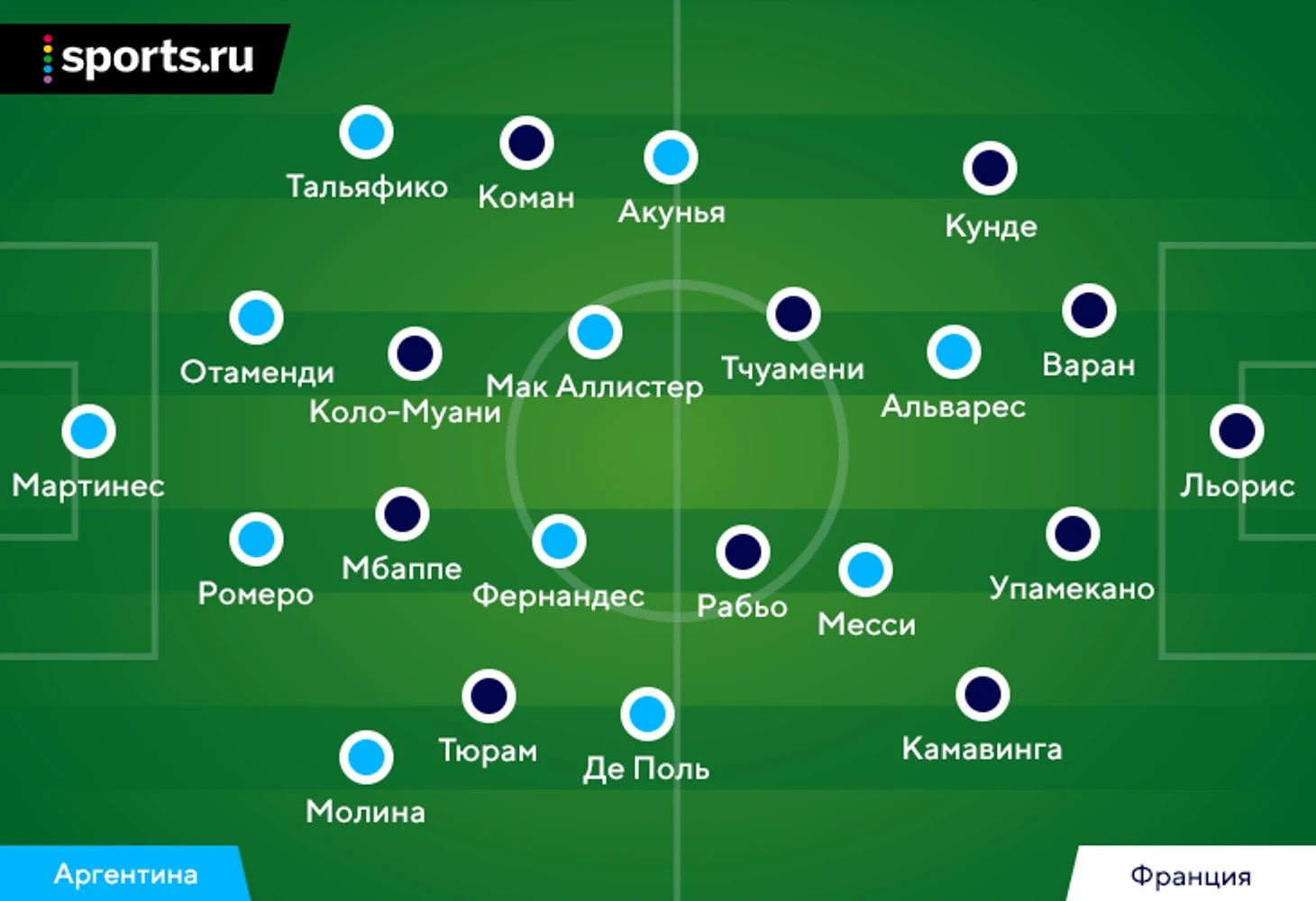 По части стартовых идей тренер Аргентины просто уничтожил оппонента. Он адаптировался во всех стадиях – и его адаптации оказались пугающе точными. Символическим признанием тактического поражения стали замены Дешама до конца первого тайма.