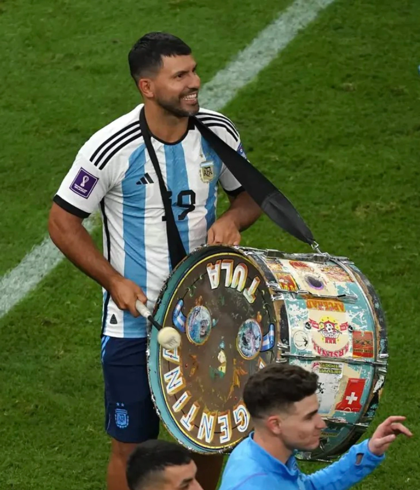 Аргентинцы бурно праздновали на поле «Лусаила» победу в финале. Среди главных заводил был Серхио Агуэро, который стал важной частью сборной, хоть сам и не играл. В какой-то момент Кун надел на шею барабан и начал радостно бить в него.