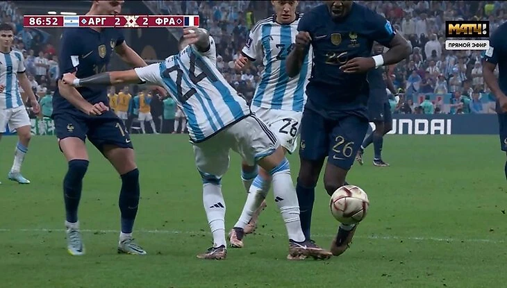 Показательный момент – второе пенальти в ворота Аргентины при счете 3:2. Монтьель сыграл в мяч рукой, значительно увеличив площадь тела. Без колебаний поляк назначил третий пенальти в матче, с которым никто не спорил.