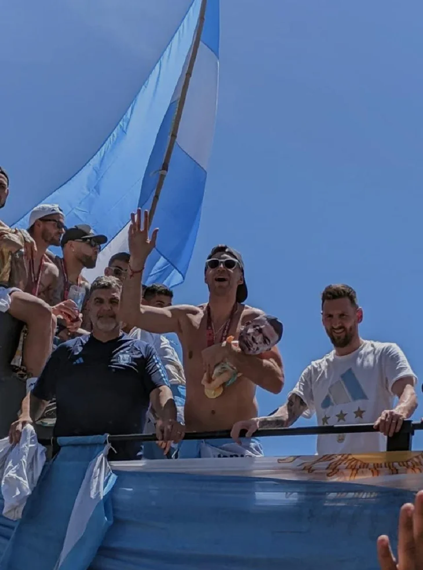 Сегодня в столице Аргентины Буэнос-Айресе прошел чемпионский парад сборной Аргентины. Футболисты, которые завоевали Кубок мира, прибыли домой и проехали на автобусе по центральным улицам города. По разным оценкам в чемпионском параде приняли участие около 4 млн аргентинцев.
