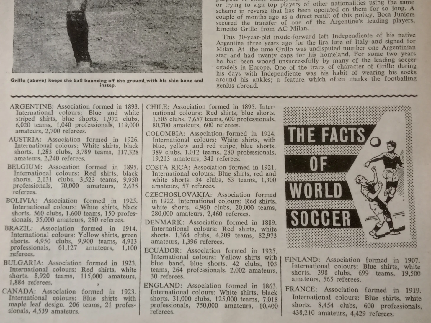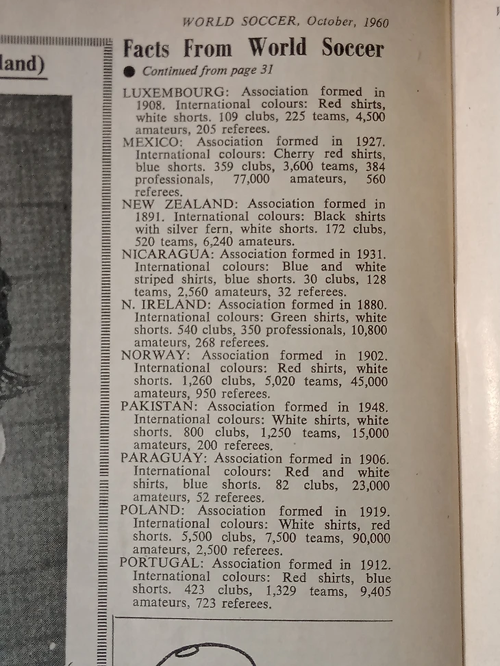 Журнал World Soccer за октябрь 1960 года. И там любопытная статистика по количеству профессиональных игроков, клубов, судей и прочее по странам.