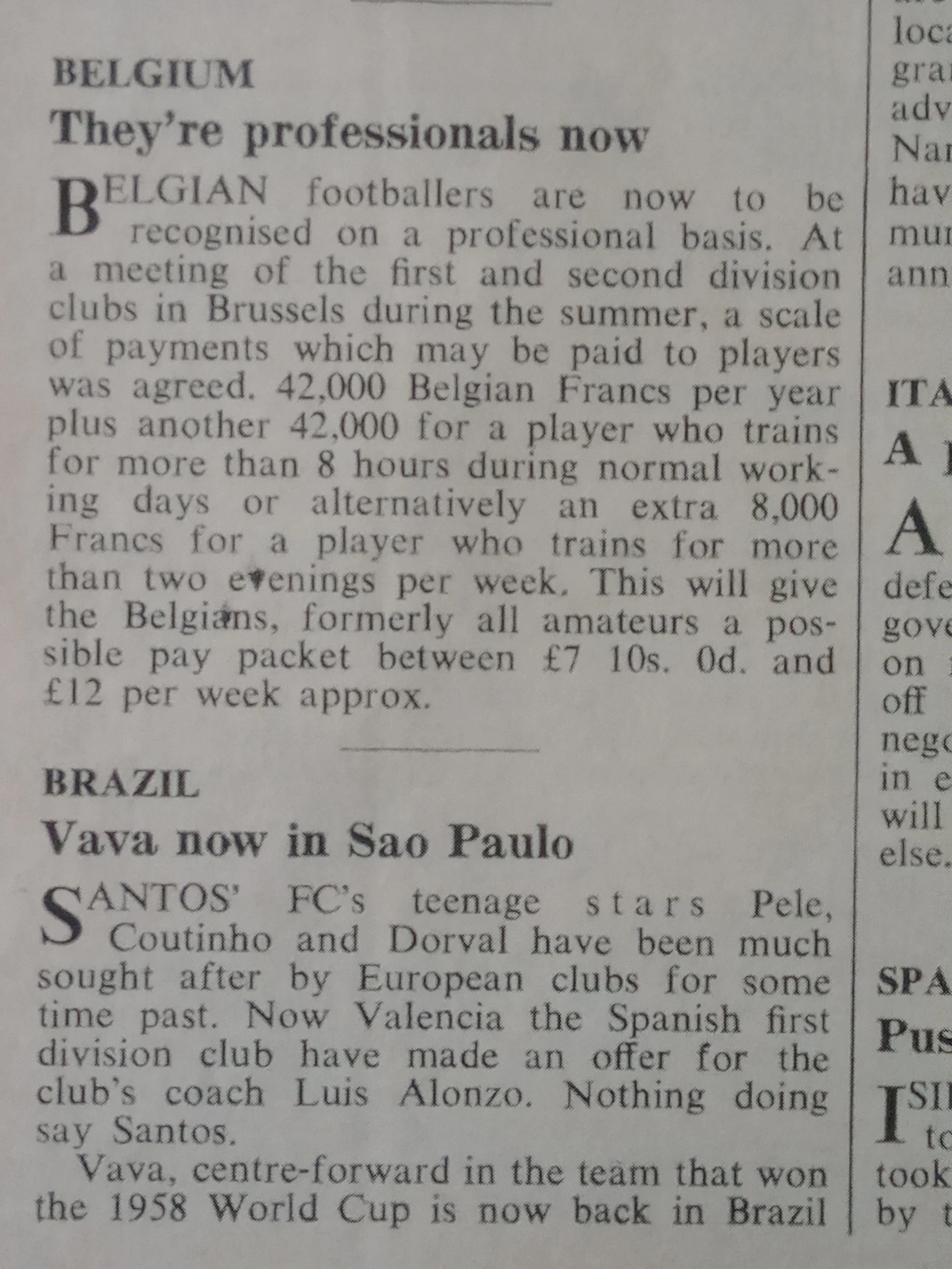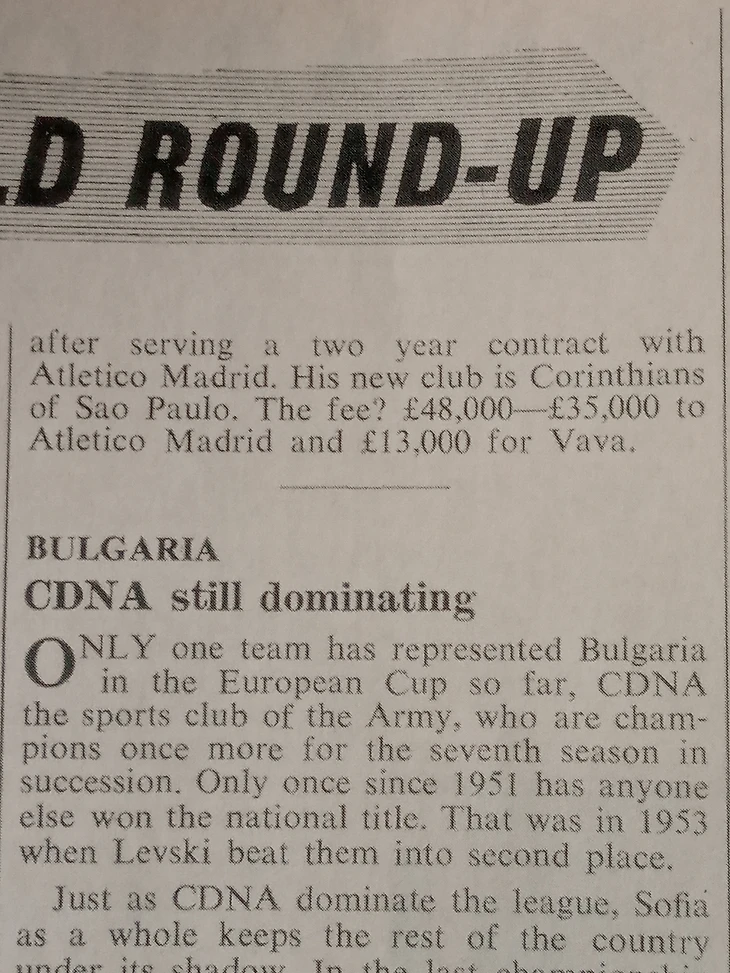 Ну и что, скажете вы, "Сантос" мог залезть в долги, взять кредиты на хотелки Пеле. Мог, но не делал этого, он вполне мог себе это позволить. Причем большие суммы мог позволить себе не только он один. В этом же издании мы видим новость о том, что "Коринтианс" (здесь конечно опечатка, которую в следующем номере WS исправил, никакой это был не "Коринтианс", а "Палмейрас") вернул домой Вава из мадридского "Атлетико" за 48 тысяч фунтов-35 клубу и 13 игроку как подписной бонус.