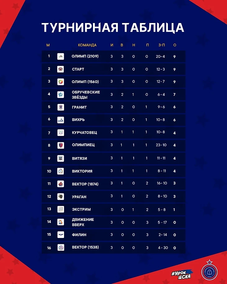 Итоги третьего тура ШФЛ ПФК ЦСКА