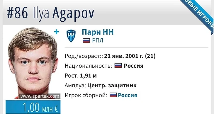 Как сообщает журналист Иван Карпов, два московских клуба заинтересованы в приобретении защитника "Пари Нижнего Новгорода" Ильи Агапова.