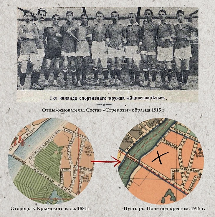 В 1910-х г. Энтузиасты зачистили пустырь между Бабьегородской плотиной и Крымским мостом, устроив здесь поляну для игры в футбол. На протяжении нескольких веков на месте этого пустыря располагались огороды. Теперь вместо сельскохозяйственных культур здесь возделывалась культура спортивная.